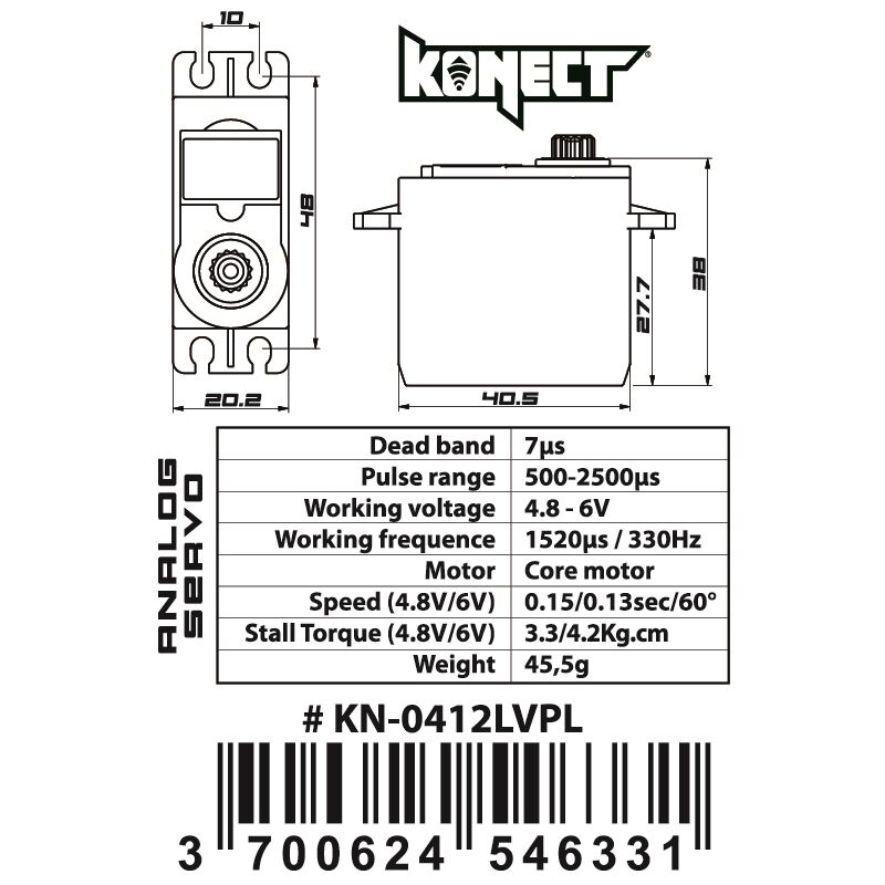 KONEKT Digital servo 4kg-0.12s plastic gear - KN-0412LVPL