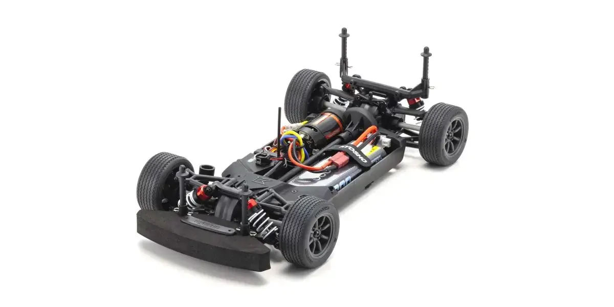 For the pure enjoyment of R/C car driving, the combination of a beautifully reproduced car body with the FAZER series chassis can't be beaten. Kyosho has taken its standard touring car chassis and given it a full model makeover that has evolved performance to a new level. A simplified design with fewer parts has improved maintenance efficiency and reduced weight while core strength and rigidity has been increased through new materials and ribbing and stiffeners on front and rear. In addition, the symmetrical chassis design synergizes excellent front-rear balance through the suspension with responsive control, irrespective of power source. Featuring front AND; rear gear differentials, oil shocks and full ball bearing specs, the high durability and impact resistance allows drivers to unleash the full potential of the chassis. Brake disc wheel hubs with two different offsets (0mm, +5mm) provide compatibility with 190mm and 200mm width body styles and allows the wheelbase to be adjusted to 270mm by replacing some parts (sold separately) for compatibility with other 1/10 scale body styles, in addition the body included. The Readyset package comes fully assembled and includes everything except charger and battery for the chassis, and batteries for the transmitter.