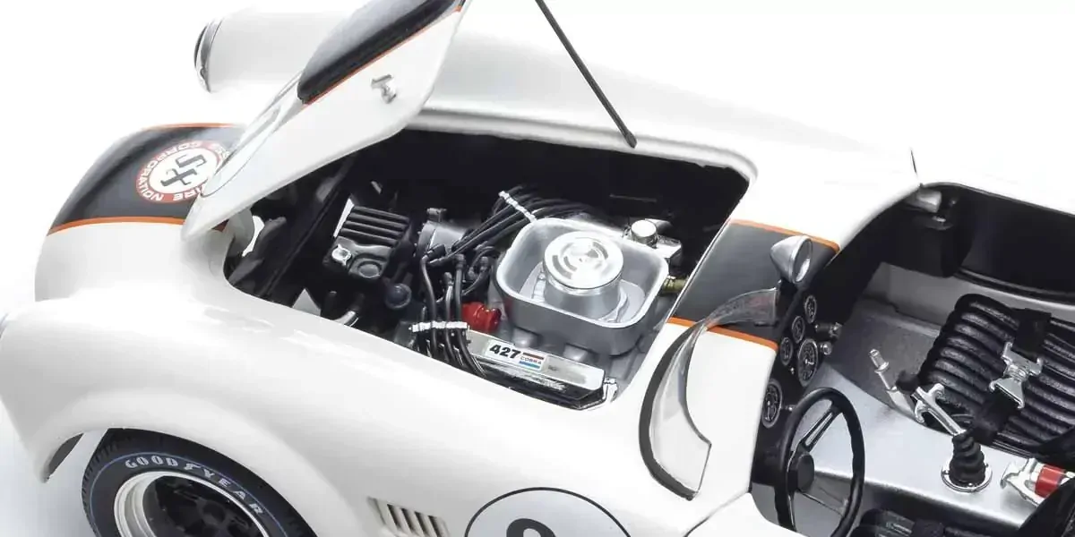 The refined AC Cobra s attractive open body in the 1960 s British sports car style was powered by a large-displacement American V8 engine. Unbound by electronic control, the AC Cobra produced breathtaking power for a dynamic driving experience not found in modern cars. More than 10 companies still reproduce replicas of this motoring masterpiece, but the original was manufactured from 1962 to 1967 (through 1969 in Europe and USA).
