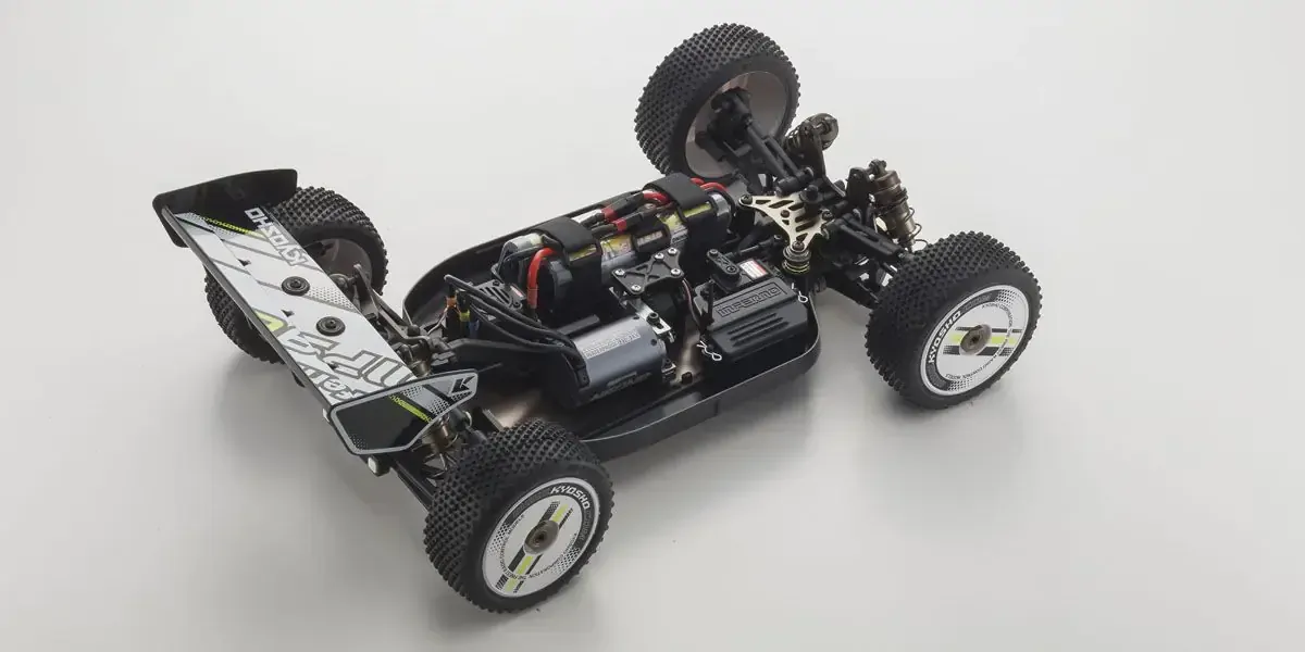 The world-beating performance of Inferno MP9 TKI is now available in electric power with the launch of the MP9e TKI Readyset. Simply switch ON and feel the power surge with instant acceleration to full speed. With precision control and handling, the MP9e marks a new era in electric buggy performance that is ready to take on any type of course. The TKI (Team Kyosho International) brand marks this MP9e as a fully equipped race spec version with the Inferno's superior racing performance and wide scope for setting options. Expert racers to beginners can enjoy breathtaking performance on any off-road circuit with this fully pre-assembled Readyset packaged with the 2.4GHz large LCD screen KT-331P transmitter and fast response/high torque KS-5031-09MW servo installed. Combined with the powerful Team Orion NEON8 brushless motor, anyone can experience and enjoy the very best electric off-road performance.