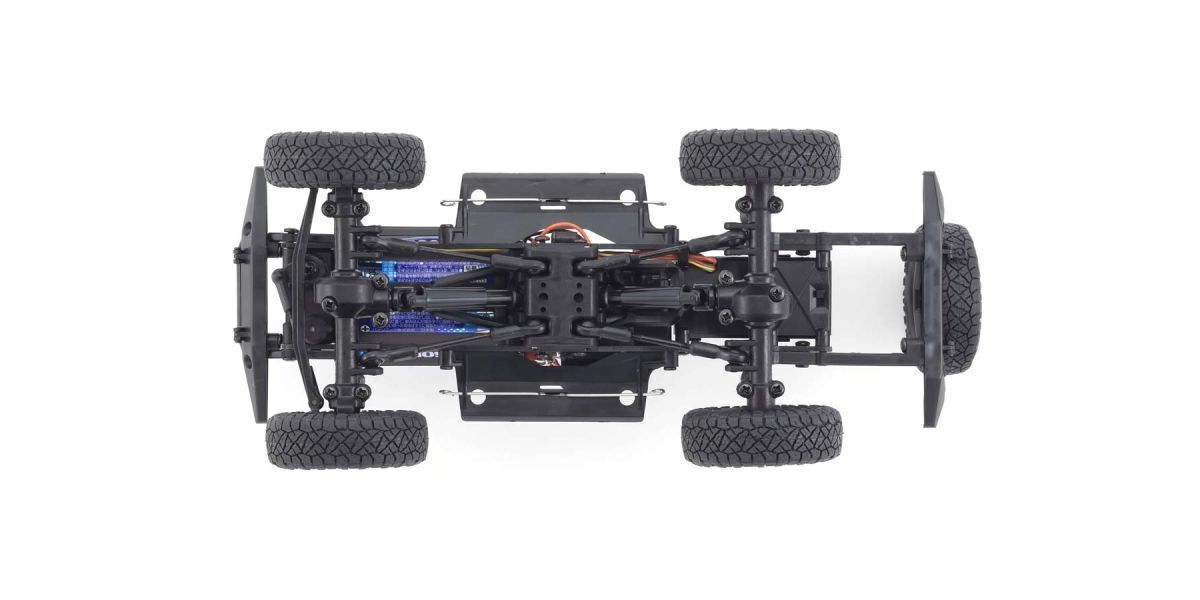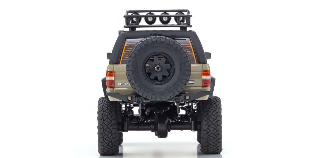 In 2019 the world's most popular mini RC series, known as the Kyosho MINI-Z, celebrated more than 20 years of unmatched performance and scale realism in the hobby-grade RC category. The continuous pursuit of performance and evolution has led to the creation of a completely-new MINI-Z 4x4 design that delivers an all-new driving experience for RC fans of all stripes, with superior overall design, driving performance and high-quality injection-molded scale body construction. A significant feature of the MINI-Z 4x4 series is the greater emphasis of body detail and quality of finish that even surpasses existing benchmarks set by the MINI-Z. The body is also molded with thicker material to better resist crash damage from operation in rough terrain. Incorporating the same ladder- style frame of real 4WD vehicles, the MINI-Z 4x4 boasts a 3-link rigid axle suspension combining what would normally be two upper links into a single upper A-arm to deliver maximum suspension movement. A specially designed high-torque steering servo enables this machine to throw its elbows around in the hard terrain for excellent performance in the toughest rock-crawler conditions. The high-torque 130-size motor brings out the beast in the MINI-Z 4x4, specially geared to run well in the low to medium speed ranges common in crawling.