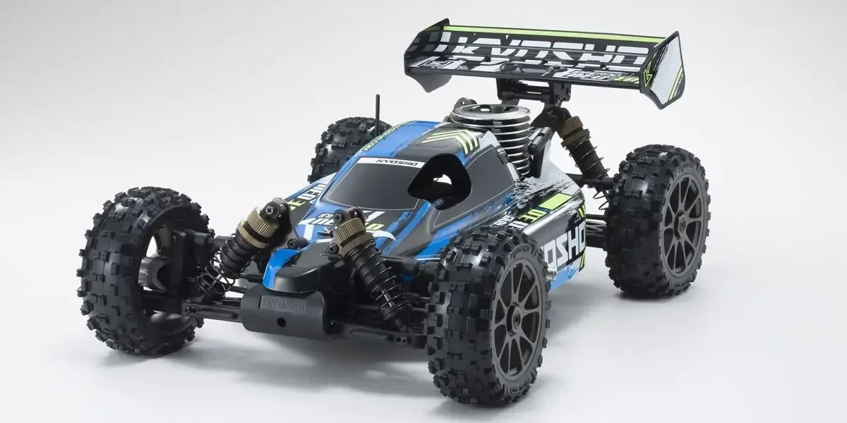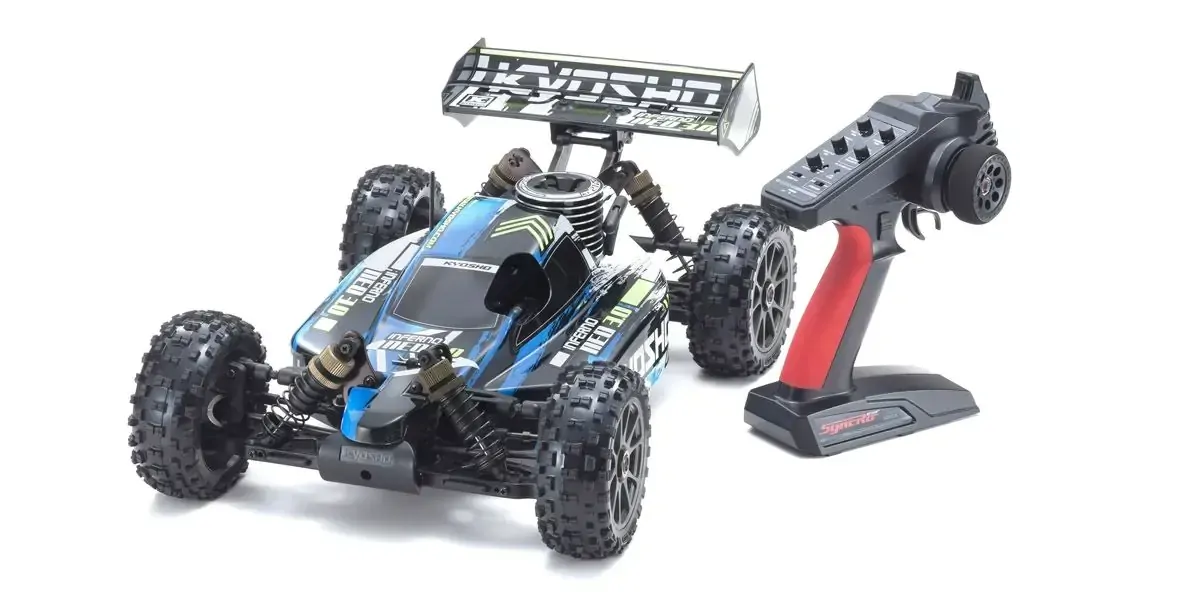 Kyosho inferno neo 3. 0 type 1 blue nitro powered 1/8 scale ready-to-run offroad buggy. The inferno neo 3. 0 is ready to race almost as soon as it's out of the box and brings the inferno's glorious performance potential within reach of everyone. While excelling on racing circuits, the neo 3. 0 also runs through rough terrain like a boss with features such as the user-friendly ke21sp engine with recoil pull starter and big bore shocks with the kc cross tires that deliver an optimal balance of performance and traction on any surface. Based on the competition-level chassis, the neo 3. 0 promises exceptional reliability and durability plus a wide range of setting adjustments and custom performance upgrades through the huge range of optional parts available for the mp7. 5 series.