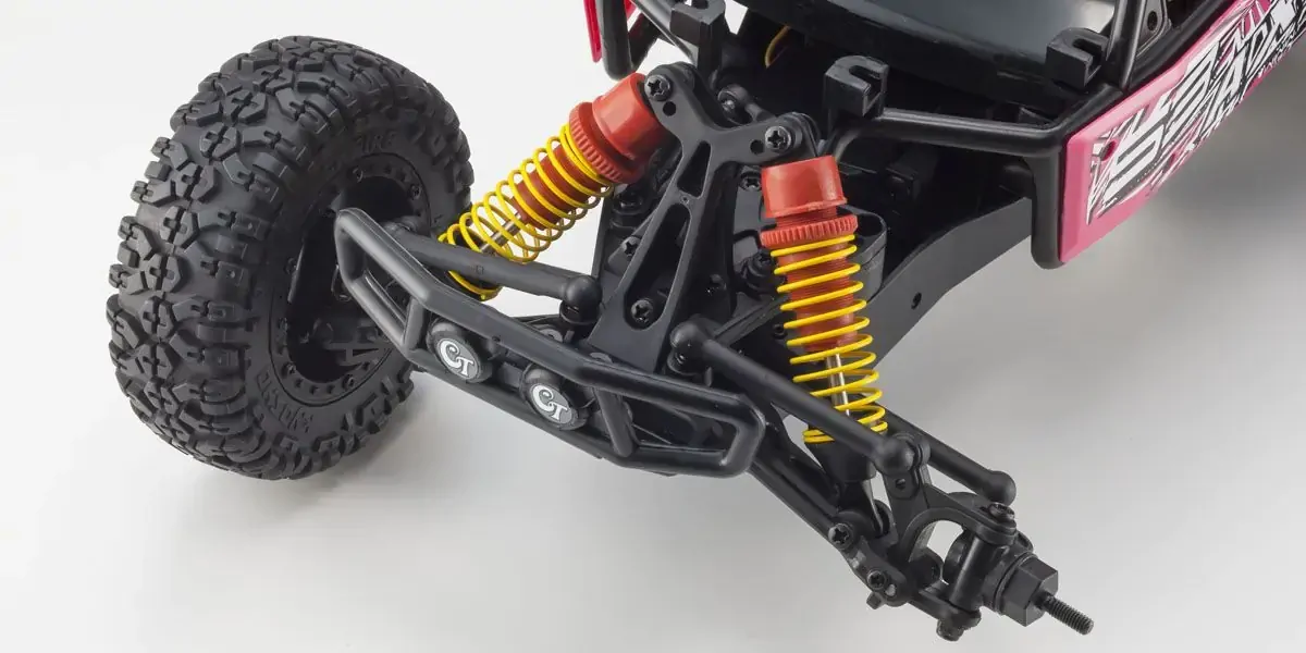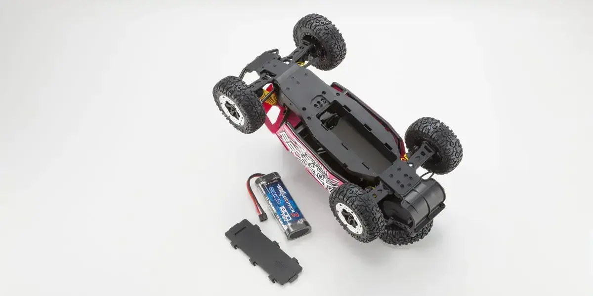 Spray dirt as you fly over bumps and jumps! Kyosho's knowledge in R/C buggy design accumulated over so many years has been applied to produce the ultimate beginner racing buggy. Fully factory assembled in a Readyset package, this is the definitive beginner R/C buggy for performance and price.
