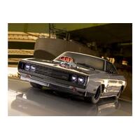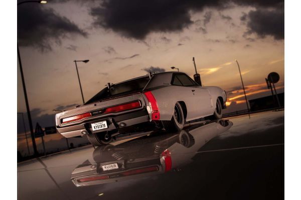 Designed and built for the pure enjoyment of R/C car driving, the FAZER Mk2 welcomes this brushless motor addition to the series. Powering up from the conventional G14L brushed motor to the TORX 10E brushless motor, the 1.6 x speed boost delivers 65km/h (up from about 40 km/h) backed up by the newly incorporated BRAINZ 10 speed controller, sintered pinion gear and aluminum HD center shaft L (previously an optional upgrade) to support the extra power and higher RPMs. This fully upgraded version of the VE specifications boasts an ultra-scale 1970 Dodge Charger body much loved in America, with a Kyosho designed supercharger, and features light buckets that can be equipped with front and rear LEDs and open/close function for concealed headlights. Kyosho s original color scheme pays homage to the rebel image of this machine and this 1970 Dodge Charger Supercharger Spec VE Gray is packaged as a pre-built Readyset, so its easy even for beginners to enjoy without delay. Just use your own battery, battery charger and transmitter to experience the first brushless motor-powered model in the VE series!