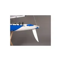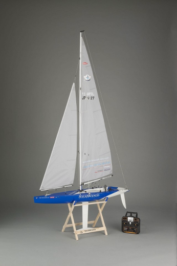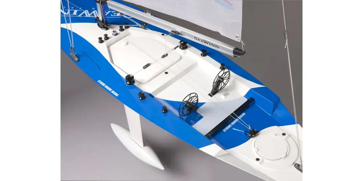 Kyosho has captured the stunning style and performance of the JF class yacht racing in a model worthy of its high-end status. The classic design of the Seawind has cruised the waterways with grace and speed since it hoisted its colors more than 20 years ago. The large aspect ratio of the long span keel and tight response from the push-pull rudder control make up the Seawinds race-ready specifications. Sharp acceleration brings the Seawind quickly up to full speed while exceptional energy efficiency delivers maximum stability in light winds so you can use light breeze like a pro. The Readyset includes a molded one-piece ABS hull factory finished in a beautiful color design that comes fitted with a 2.4GHz RC system that automatically manages frequency band selection. With the Seawind, you can be cutting a wake through the water in a high-end racing yacht in next to no time, and at a reasonable cost too. In addition, the mast, keel and rudder can be detached without the use of any tools for compact storage and transport so you can take it with you on holidays without it taking up a lot of space. The sail and rudder servos are waterproof and deliver exceptional reliability under various conditions. Answer the call of the wind with this high-level Seawind Readyset!