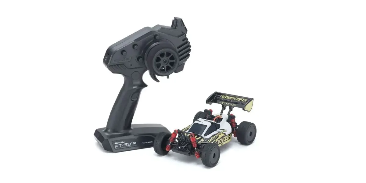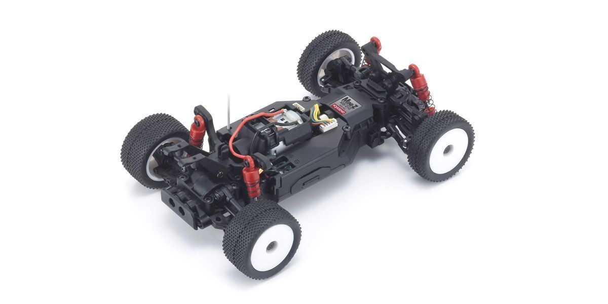 Simply add eight aaa-size alkaline batteries to this readyset and the mini-z buggy brings the fun of r/c car action. The advanced compact design includes 4wd drive train with slipper clutch to protect the gear system, and 4-wheel independent double wishbone suspension with oil-filled shocks to deliver true racing buggy performance. Most critical components are protected within the high-rigidity dustproof chassis shell. 7-stage geared steering servo provides plenty of torque for precision steering response and combines with the control program to realize the mini-z s signature linear handling and light feel. The circuit board also features manual left/right volume adjustment for the optional gyro unit (sold separately) that stabilizes straight line running and improves cornering control. Modeled on the popular inferno mp9, the mini-z buggy body matches performance with style featuring a distinctive new printed color scheme complimented by black wheels for the sharpest looking machine on the track. The fully pre-assembled readyset package makes it simple and enjoyable for anyone to experience advanced r/c buggy performance, whether it s your first car or as fun-driving second car.