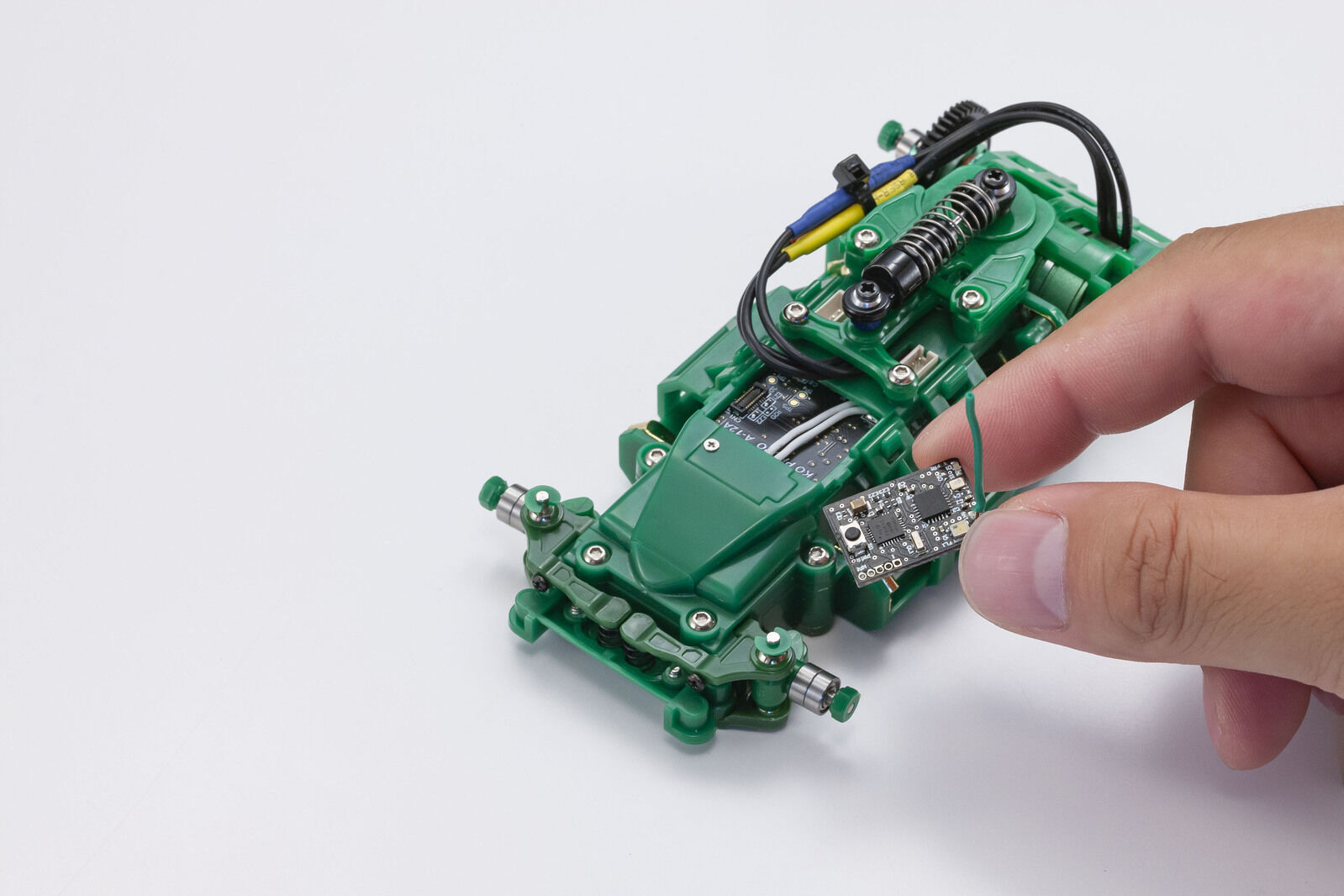 The existing mini-z is installed receiver, servo and esc by 1 controlled pcb unit. But the new mr-03evo chassis set has separate receiver as 1 unit. By purchasing and installing an optional receiver unit depending on applied transmitter, it allows for kyosho (kt-18/ex-6/ex-6r/kt-531p/kt-432pt), ko propo (ex-2/ex-rr) and futaba (t7px/t7xc/t4pm) transmitters. Further, by installing new cpu which control servo function only, it improves internal feedback of positioning control which is 11. 2 times faster than existing ve pro models. The newly developed control program realizes the best ever steering feeling in the mini-z history. The esc also improves the response speed in maximum 100 times faster than existing ve pro models. The included kyosho speed house xspeed 41 (4100kv) brushless motor features a one-piece aluminum case that provides efficient heat dissipation for superior cooling. Unlike previous chassis sets, you can change to the brushed motor mode though the i. C. S manager to install an optional brushed motor. The i. C. S manager also allows more precise setting adjustments to be made. New advanced performance features in the mr-03evo take the mini-z racing experience to the next level! the sp edition is equipped with nickel plated hex screws and an oil shock (mzw432) as standard. Also, the ball diff is specially finished with green anodizing. Furthermore, new upper arms with various caster angles (1 deg. /2 deg. /3 deg. ) are included allowing wider setting range.
