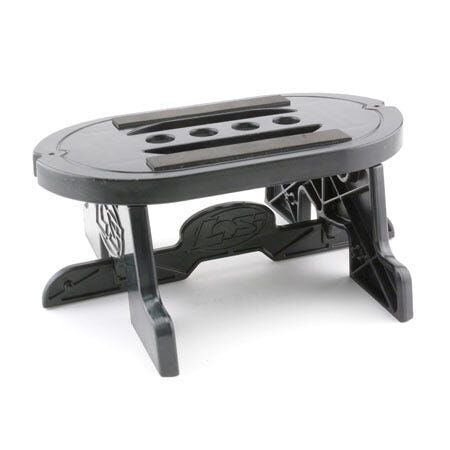 The 8IGHT/T Car Stand is designed to work with the 8IGHT and 8IGHT-T. The snap-together design makes it ideal for easy transport, and easy fit in your toolbox or pit box. The stand's no-slip design securely holds the chassis while you work, and the built-in shock holders prevent the shocks from rolling around during fluid changes.