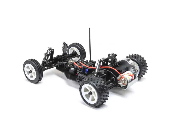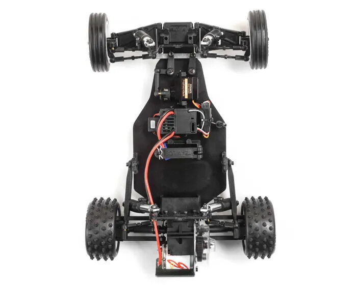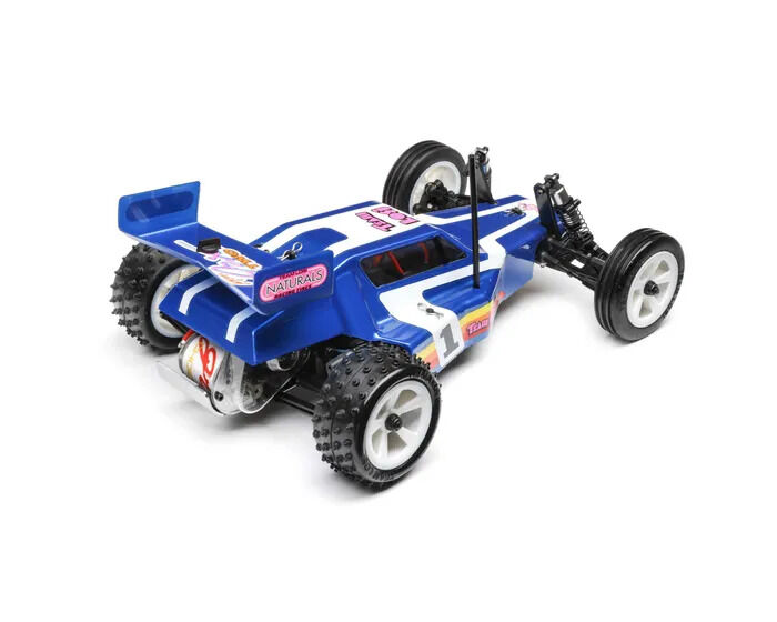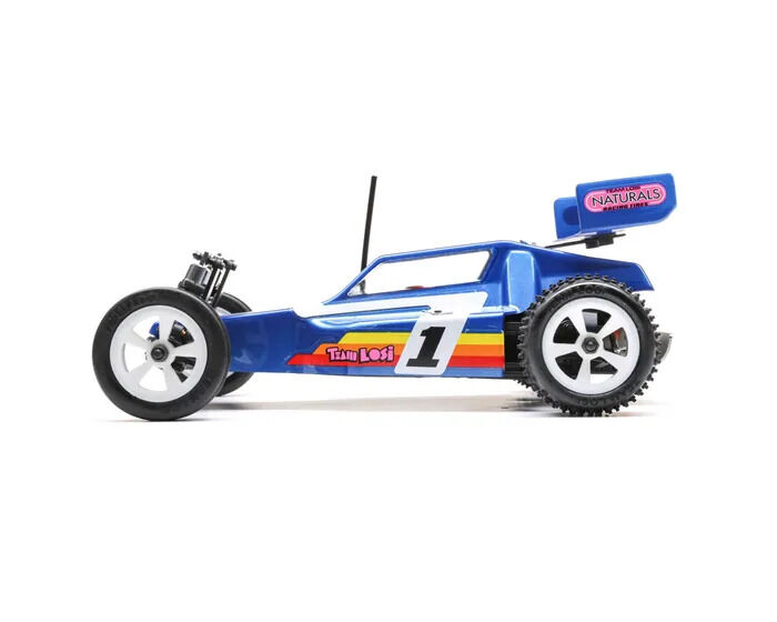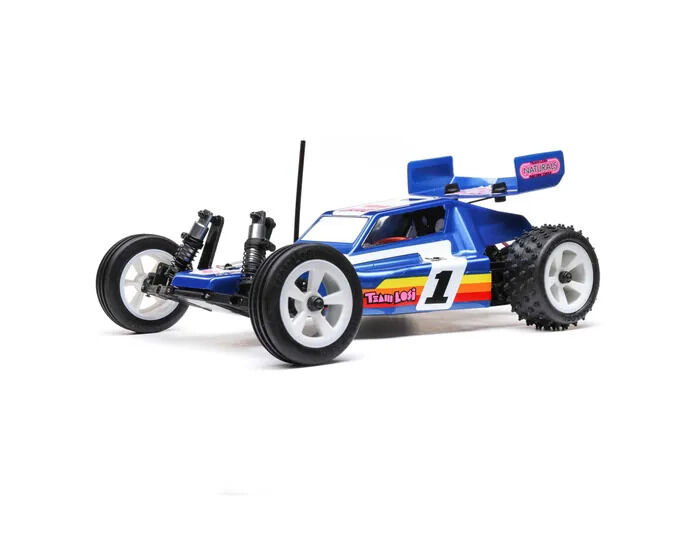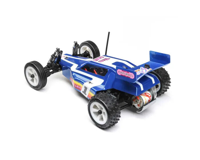 For years, racing enthusiasts demanded a re-release of the JRX2 buggy, the original vehicle that made Losi a worldwide force to be reckoned with, and now they get their wish in a 1/16th scale package. The Losi Mini JRX2 Buggy honours its roots by creating a mini buggy with a classic look and 21st-century performance. With a 5-link rear suspension providing maximum grip in loose conditions, aluminium shocks, and era-specific ribbed front tires, and 4 row step pin rear tires, you get more from a Mini than ever before. It features a rear motor configuration like the original and three different trim schemes that mimic the original box art schemes of the era, all in a total ready-to-run package. Everything about this buggy is designed to deliver a jaw-dropping experience.