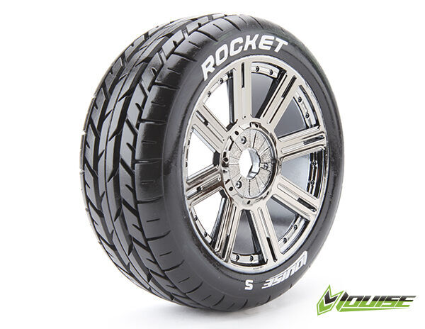 Enquire about " Louise RC - B-ROCKET - 1-8 Buggy Tire Set - Mounted - Soft - Black-Chrome Spoke Wheels - Hex 17mm - "