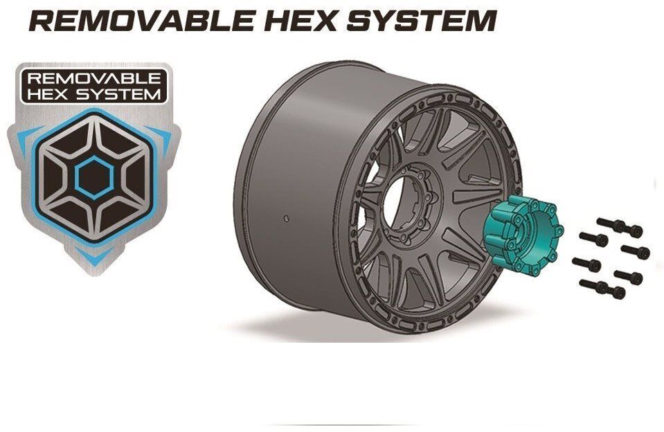Mt-rocket speed 1/8 monster truck tires, 0"" & 1/2"" offset, 17mm removable hex on black rim, soft (2) experience excellence with louise rc tires: elevate your rc adventure louise rc tires stand as the pinnacle of innovation and performance in the world of remote-controlled vehicles. Crafted with precision engineering and a passion for excellence, these tires redefine what's possible in rc driving. Each louise rc tire is meticulously designed and rigorously tested to deliver unparalleled performance on any terrain. From rugged off-road trails to smooth racetracks, these tires provide exceptional grip, traction, and control, while the unique micro fiber technology (mft) belted weaving prevents tire ballooning, allowing you to push the limits of your rc vehicle with confidence. ""speed"" series tires feature a low-profile sidewall for increased control at high speeds. Whether you're a casual hobbyist or a seasoned rc veteran, louise rc tires are sure to enhance your driving experience. With unmatched performance, durability, and versatility, these tires empower you to take your rc adventures to new heights. Choose louise rc tires and elevate your rc experience today! includes 0"" & 1/2"" offset, 17mm removable hexes 1/8 monster truck tires, 0"" & 1/2"" offset, 17mm (lt3354sb)