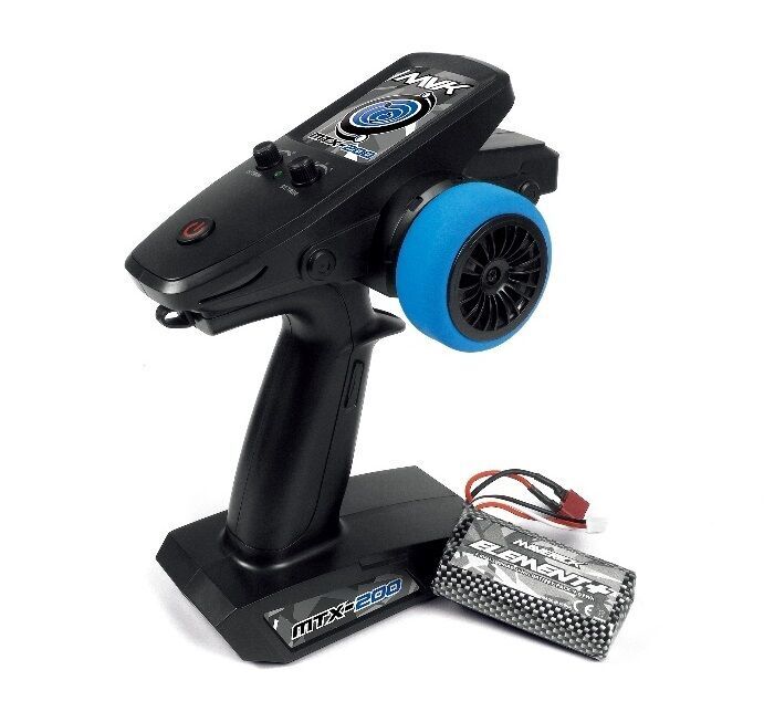 The MTX-200 transmitter makes for a fantastic driving experience with great throttle and steering response. The color-matched foam steering wheel is comfortable to hold and gives a great driving feel. The included steering and throttle trims allow you to setup the car with ease.