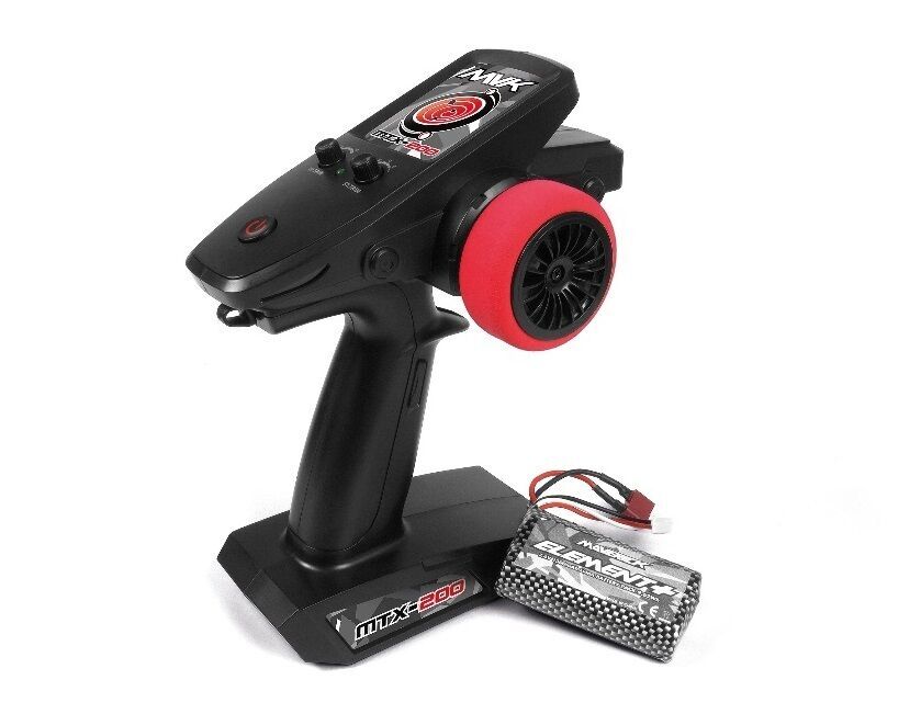 The MTX-200 transmitter makes for a fantastic driving experience with great throttle and steering response. The color-matched foam steering wheel is comfortable to hold and gives a great driving feel. The included steering and throttle trims allow you to setup the car with ease.