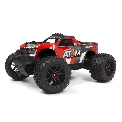 Maverick RC's reputation for affordable fun continues with the hugely impressive ATOM! This 1/18th scale monster truck gives you the thrilling excitement of much larger RC trucks in a package that fits in the palm of your hand! 4WD grip and large off-road tires mean you can turn anywhere you go into your own RC playground!