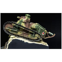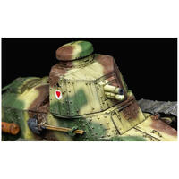 This 1/35 scale French FT-17 Light Tank (Riveted Turret) plastic model kit faithfully represents the vehicle shape and driver s compartment interior. Driver s hatch can be assembled in the open or closed position; the movable suspension system is molded perfectly, and the weight-bearing parts are sturdy; cement-free workable track links are easy to assemble; two weapon options and a precise PE fret are provided; a delicate diorama base is provided to achieve a vivid diorama; two paint schemes are offered.