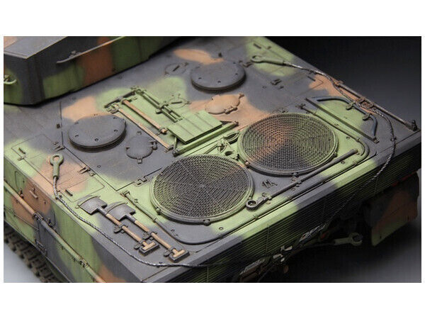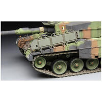 This 1/35 scale German Main Battle Tank Leopard 2 A4 plastic model kit precisely represents the exterior features of a fifth batch tank. Options of tanks of different batches are available with optional parts in the kit.