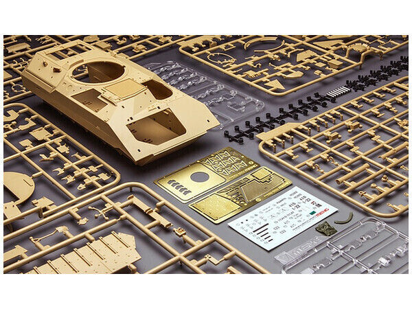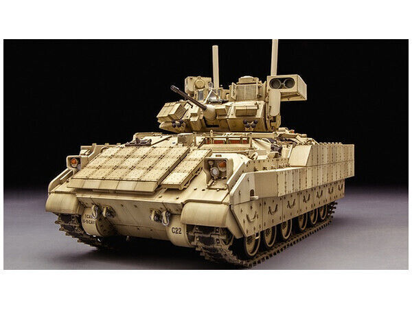 This ss-006 1/35 scale u. S. Cavalry fighting vehicle m3a3 bradley w/busk iii model is 203. 5mm long and 107. 3mm wide. The model accurately realized the exterior and details of the real vehicle; all crew and passenger hatches are movable; the vehicle can be modeled with/without add-on armor; tow anti-tank missile launcher can be built in folded or firing position with/without missiles. A whole set of modern u. S. Military vehicle antenna system is included. The kit is comprised of 14 sprues, 2 pe frets, and rubber and metal parts