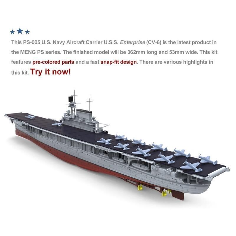 Write A ReviewMeng 1/700 U.S. Navy Aircraft Carrier U.S.S. Enterprise (CV-6) Plastic Model Kit