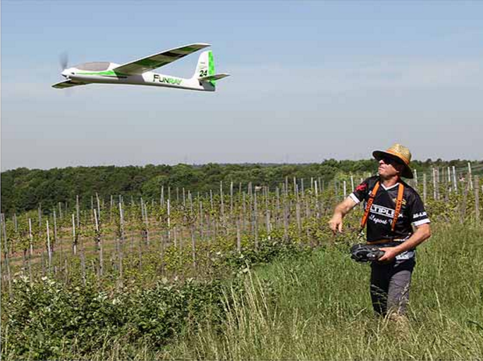 The FUNRAY electric glider delivers with incredible speed and precision in the aerobatics. This the most advanced ELAPOR sailplane model yet! This performance is made possible thanks to its modern hybrid construction with the composites of carbon fibre, stainless steel, aluminium, plastic and the special ELAPOR construction foam.