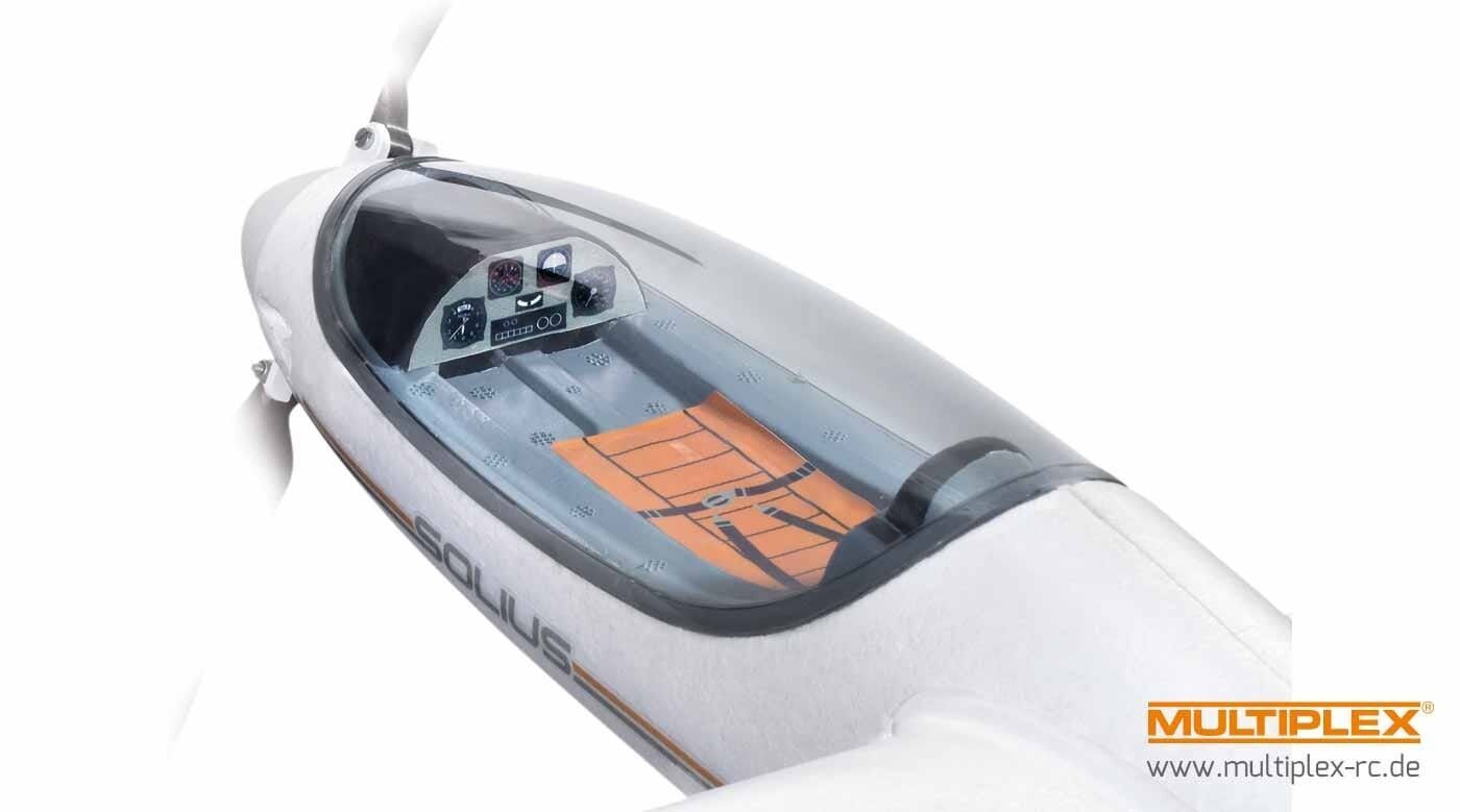 Let the solius bring you close to the sun! With its pleasant handling and excellent performance, the solius glider offers tremendous soaring pleasure for everyone from the weekend flier to the professional pilot. This over-achieving sailplane is perfect for flat-land and slope sites alike, delivering long soaring flights and lively aerobatics. The solius features a t-tail, detailed cockpit, clear canopy and numerous innovative elapor foam construction details, making it a pure delight to fly. Flown with electric power or as a pure sailplane from high start to aero tow, it is the perfect glider for all.