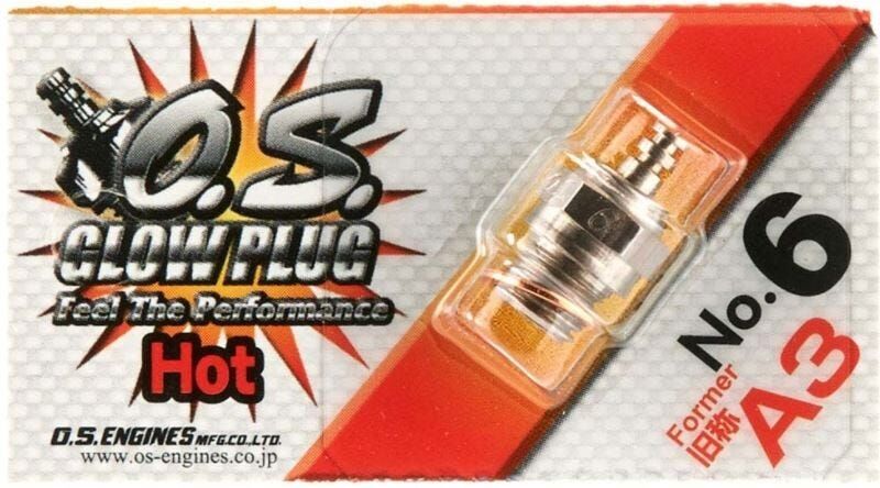 Os engines glow plug no. 6 (a3) hot to suit small to medium sized aircraft engines (15-55) with up to 10% nitro content fuel