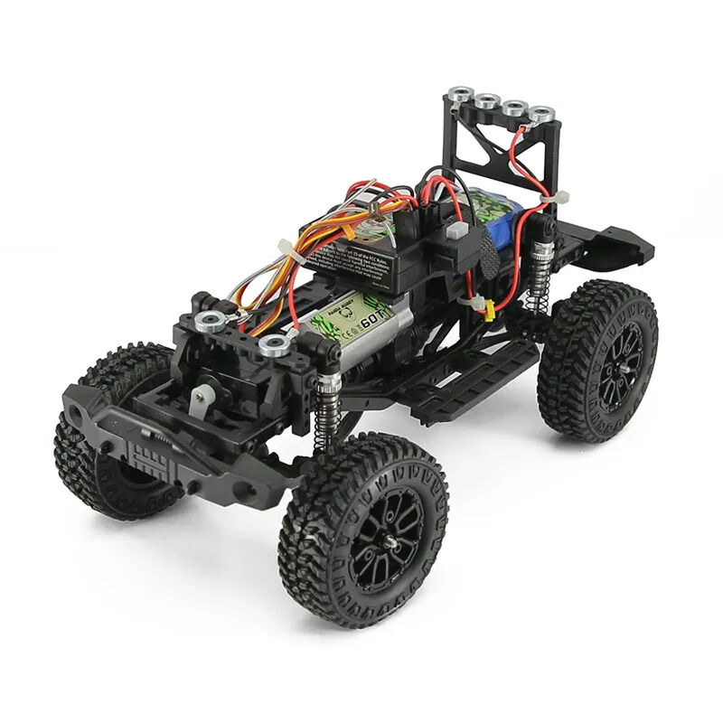 The Tetra is also ready to light up the trail. The X series lighting system includes 8 LED's - 4 front and 4 rear-facing lights. The system is controlled by the transmitter, featuring four distinct light settings - off, solid, slow flash, and strobe. The brake input on the transmitter activates the white reverse lights, while turning left or right activates the blinkers. The Tetra 1/24 is ready to get the party started both day and night.