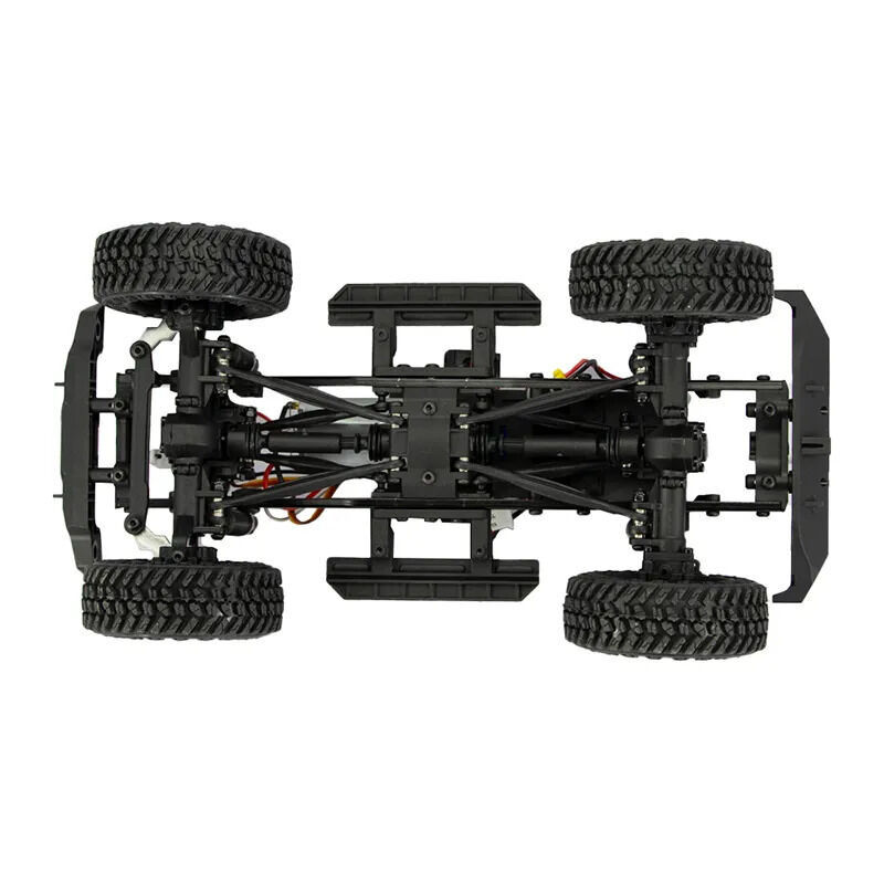 The heart of the Tetra 1/24 is the portal axles. Portal axles provide an abundance of ground clearance and give a scale detail that is found more commonly in 1/10 rigs. In creating the portals, the desire was to have a consistent feel ascending and descending all types of terrain, and the metal worm gear drive system gives the same exact driving experience in either direction and on different terrain. You control the speed 100% with the throttle going downhill just like you would uphill, versus the brake/motor magnets doing the work on your descents.