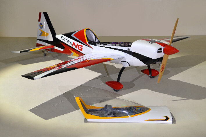 The phoenix model extra ng (next gen) 50-60cc is a scale-like rc plane engineered to perform both precise and extreme 3d aerobatics. The design allows for the use of 6 standard hi-torque servos and the capability of being powered by a 50-60cc gasoline engine or a 6500 w 160kv brushless outrunner motor. The wing is a bolt-on two-piece for easy transport and setup at the field and the canopy is removable for easy lipo battery changes and radio set up. All the hardware is included. You only need to separately purchase the power system and radio system.