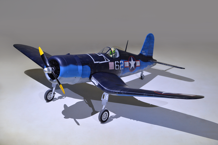 The F4U Corsair was a force to be reckoned with to the Japanese during WWII. With its gull wing design, impressive looks and power, the Corsair was one of the most recognizable WWII aircraft. Phoenix Model has recreated this outstanding Airplane to suit size 1.20-1.40 plug engines or 26-35cc gas engine. It was designed with the latest laser cut technology .Craftsmanship really shows up on the Corsair s gull-shaped wing,This superb looking F4U from our top quality and has enough scale detail and features to keep any warbird enthusiast happy