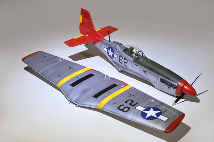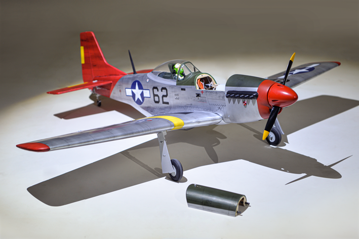 The Mustang P51 is the most famous warbird and the most popular radio controlled plane. Created with the scale enthusiast in mind, this almost-ready-to-fly airplane replicates the scale outline of its full-scale counterpart with accuracy. the Mustang P51 is packed with scale details. Including Retract landing gear and all the hardware are included (servo wire, fuel tank, wheel/landing gear, etc). You only need to separately purchase the nitro engine and radio system, and fly.