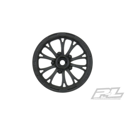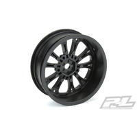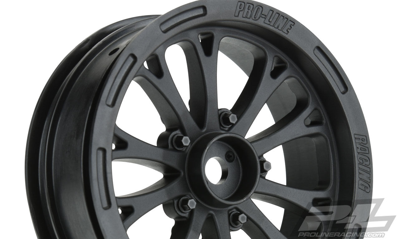 This is a pair of Pomona Drag Spec 2.2" Black Front Wheels. Do you need high-performance and perfectly d drag wheels for your no-prep SC drag car? Pro-Line has you covered with the all-new Pomona Drag Spec 2.2" Black front Wheels! The Pomona wheels were specifically made for no-prep Drag racing and are a perfect fit with Pro-Line's Hoosier Drag 2.2" Front Tires! The Pomona wheels are strong and lightweight 12mm hex wheels making them the ideal choice for performance drag racing. The wheel spoke design mimics what you would find at the Pomona Drag Strip on any given race weekend and will complete the look of your build. The Pomona wheel offset is ideal for 2wd Slash trucks converted to no-prep Drag Racing cars, which has exploded in popularity. The Pomona Drag Spec wheel and every other wheel that Pro-Line makes is proudly Made in the USA. Launch your no-prep Dragster to the next level with the Pro-Line Pomona Drag Spec Wheels today!