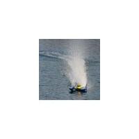 Because the hull is lightweight and durable, you can push this hydroplane to max speeds in race condition waters. The canopy, like the hull, is constructed of hand-laid fibreglass. The vertical fins are removable and replaceable. In case of a bad crash, they will simply break away without damaging the hull.
