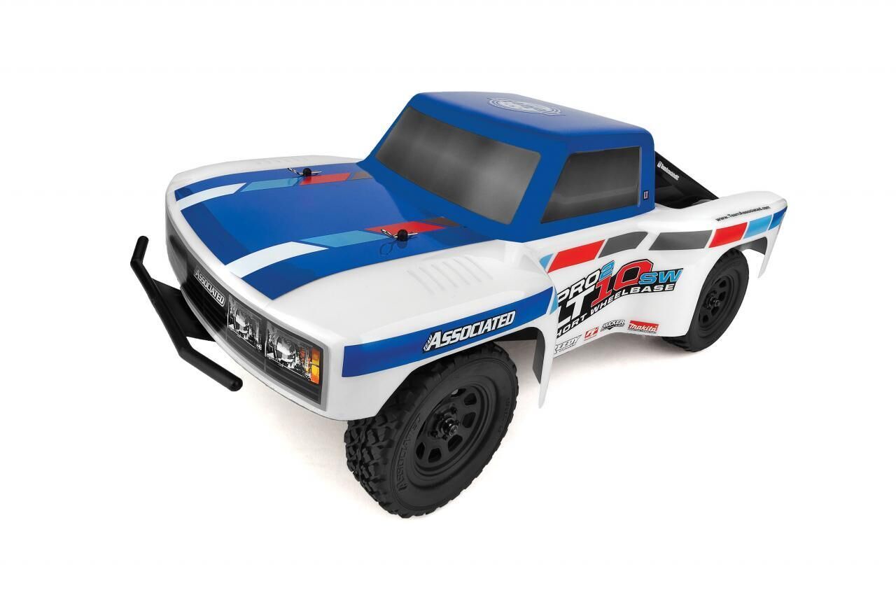 Team Associated's new Pro2 LT10SW short course truck is a detailed and fun-to-drive Ready-to-Run RC truck. Based on our championship-winning Short Course truck, the Pro2 LT10SW features some of the latest features in racing. A durable lightweight aluminum top shaft, rugged steel turnbuckles and adjustable suspension geometry give the Pro2 LT10SW the ultimate in handling on all terrain. This makes it a perfect platform for short course racing!