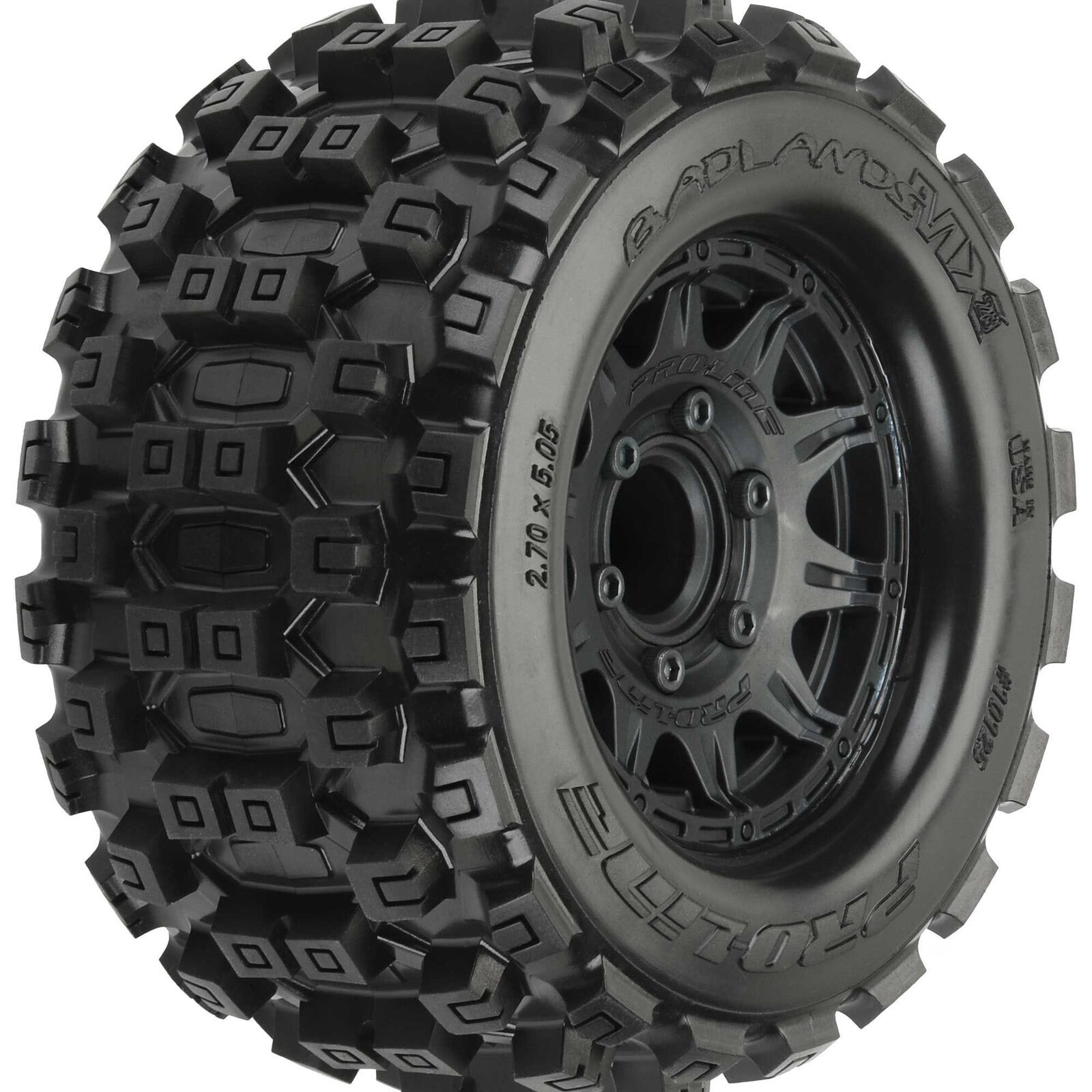 This is a pair of pre-mounted Badlands MX28 2.8 ¢ ¬ ¿½ Tires on Raid Removable Hex Wheels. Pro-Line is very excited to announce the availability of the Badlands MX 28 2.8" tire pre-mounted to the Raid Black Removable Hex wheel! Pro-Line is taking the 2.8" tire game to the next level with the Biggest and Baddest tire ever conceived: the Badlands MX28! Pro-Line Badlands tires are known for having sweet Motocross inspired tread and the Badlands MX28 tires kick that up a notch with a Bigger and Bolder knobby tread that matches modern MX tire design.