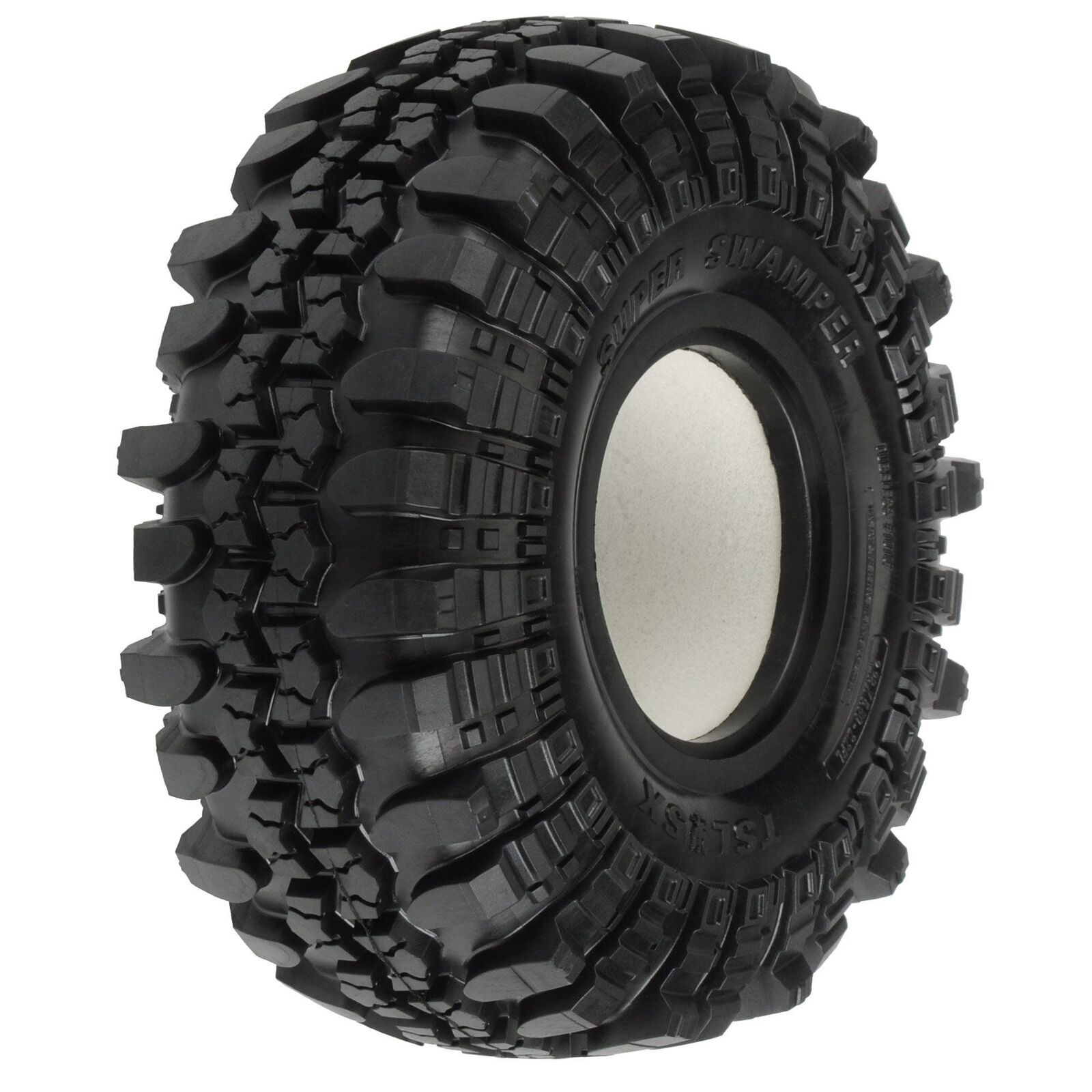 This is a pair of Super Swamper XL 2.2" Tires. Under official license from Interco Tire Corporation, Pro-Line is proud to announce the 2.2" TSL SX Super Swamper XL in the legendary G8 compound. With "almost scale"not being acceptable and access to Interco's design data, Pro-Line's engineering staff has reproduced the Super Swamper in a scale configuration matched by none. The new 2.2" XL is perfect for scale crawlers that want maximum ground clearance and unmatched rock crawling performance.