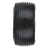 This is a pair of pre-mounted Prism Tires for the Mini-B ¢. The Mini-B ¢ is one of the most exciting new mini vehicles released and Pro-Line is ready to take it to the next level with mini carpet tires. Introducing Mini-B ¢ Prism rear tires perfect for racing your friends at the local carpet track! You can even set up a track in your living room! The Prism features Ultra-Sharp Prism-shaped Pins for long-lasting carpet racing tread and very consistent performance. The Prism pins are positioned with the knife edge pointed front to back and side to side for maximum grip and stay sharp even as they wear down. The Prism rear tires are conveniently pre-mounted to Yellow Mini-B ¢ rear wheels and are made from a special carpet racing compound. Pair the Prism rear tires with the Wedge front tires (8298-12) for maximum carpet performance. Don't get left out of the Mini-B ¢ carpet fun. Get your own set of Pro-Line Mini-B ¢ carpet tires today!