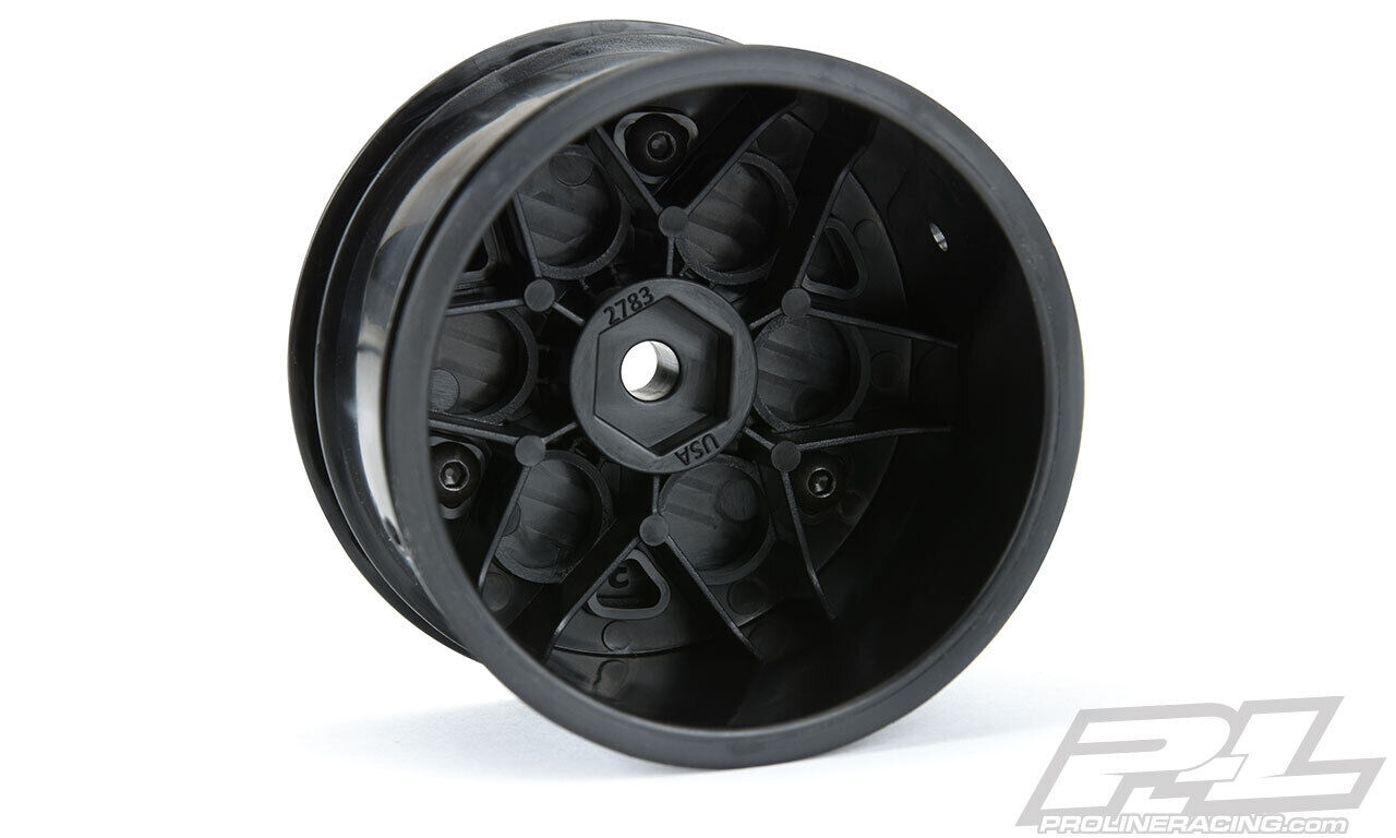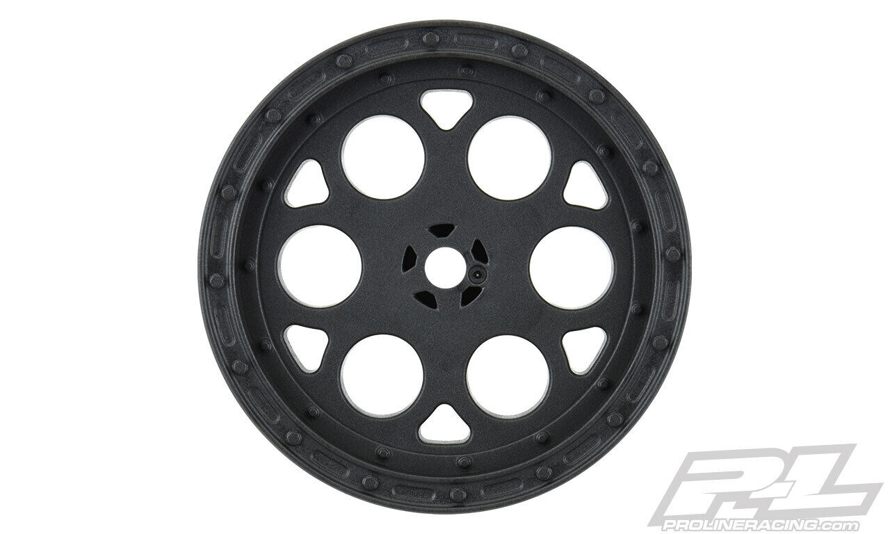 This is a pair of Showtime 2.2" Rear Sprint Car Dirt Oval Wheels. Pro-Line is proud to introduce the new Showtime 2.2" Sprint Car Wheels made specifically for Dirt Oval racing! The Showtime wheel features a scale spoke pattern like full-size sprint car wheels and includes an optional dish wheel face cover if that is the look you prefer. Pro-Line's new Sprint Car wheels are made from lightweight and durable black nylon and feature a 12mm hex molded into the wheel to fit as many applications as possible. Standard 2.2" Buggy tires glue directly to the Showtime wheel, so you can choose which tires will take you to the winner's circle. It's time for you to make the big show with Pro-Line's new Showtime wheels! Get yours today!