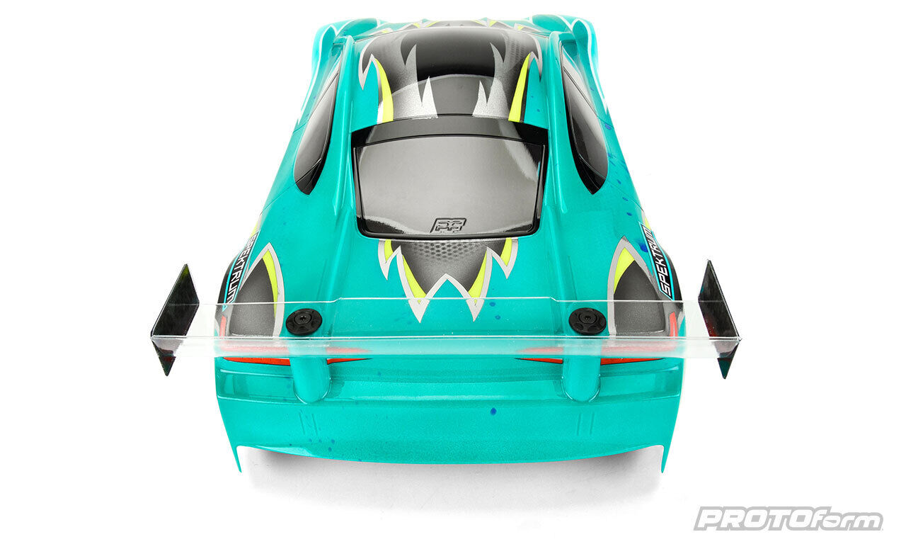 The P63 also features the easiest mounting of any PROTOform body yet. Returning are PROTOform's signature Mounting Marks inside the front wheel arches, allowing you to choose your body positions in 2mm increments up to +8mm. In addition are markings on the hood, decklid, and rear bumper to easily line up your body posts no matter what chassis or rear body post configuration (vertical or horizontal) you prefer.