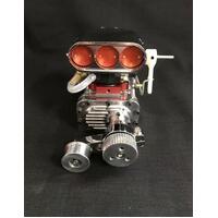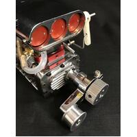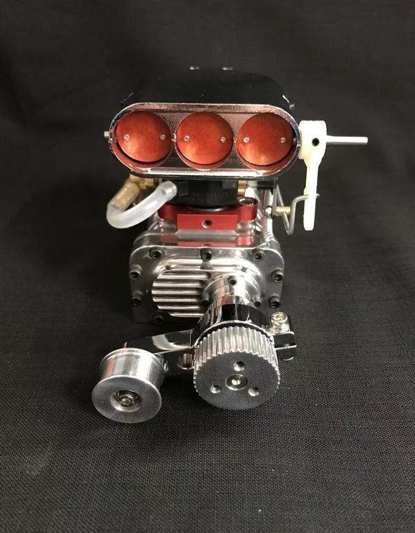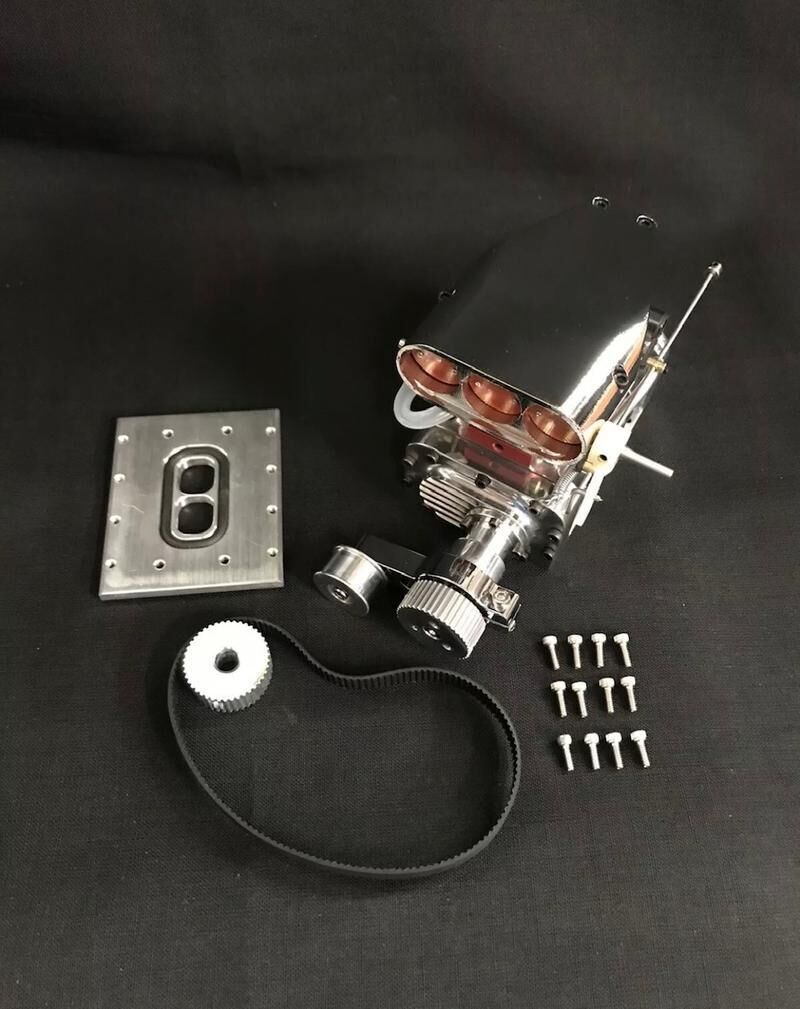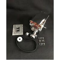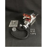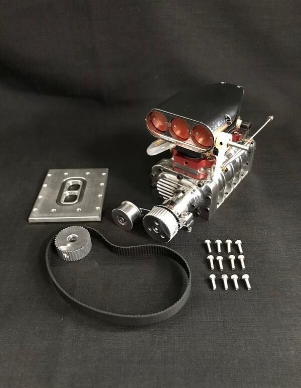 This is a 1/4 scale functional supercharger to suit the conley v8 engine generation 1-4 and our range of v8s. For the gen 4 you will require a manifold and also need to drill 4 holes. Email for more details. Includes: - polished supercharger - adjustable belt tension - polished pulleys - twin perry carburetors - chrome bug catcher with red or yellow flaps - your choice - adaptor plate - belt - screws (qs-supercharger)