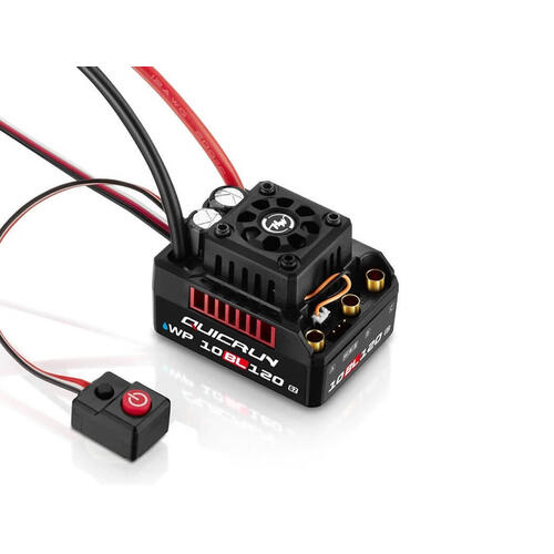 HOBBYWING QUICRUN WP 10BL120 G2 BRUSHLESS SENSORLESS ESC FEATURES Excellent waterproof and dustproof performance, it is easy to deal with various climatic conditions and harsh environment. Smart freewheeling technology makes the esc have higher driving efficiency and lower operating temperature, and the stability and reliability of the esc are further improved. Built-in powerful switch mode BEC, continuous current up to 5A, instant up to 10A, and support 6V/7.4V adjustable, easy to drive various powerful and high-voltage steering servo. Multiple protection functions: battery low voltage protection, esc overheat protection, throttle signal loss protection, current protection, capacitor overheat protection. It has an independent programming port. When connecting the program card, it is not necessary to pull the throttle cable out of the receiver, which is more convenient to use. SPECIFICATIONS Cont. / Peak Current: 120A / 760A Motor Type: Sensorless / Sensored Brushless Motor (only in sensorless node) Applications: 1/10th Short course truck, Monster Truck Motor Limit With 3S LiPo: KV < 4000 3660 size motor Motor Limit With 4S LiPo: KV < 2600 4268 size motor LiPo Cells: 2-4S LiPo BEC Output: 6V / 7.4V adjustable, continous current 5A (Switch-mode) Cooling Fan: Powered by built-in BEC Size / Weight: 52.8(L) x 39.8(W) x 38.2(H)mm / 119g (Included wires & connectors) Programming Port: Independent programming port Warnings: Before using this product, read the instruction manual carefully. Ensure that the equipment is used appropriately to avoid damaging the ESC. The wrong usage will overheat and damage the electronics. It is important to ensure that all wires soldered are properly secured to avoid short circuits from happening. A good soldering station is recommended to do such a job to avoid overheating the circuit board as well as to ensure connections are properly soldered. Even though the product has relevant protective measures, always use it in a safe manner in accordance with the operating environment noted in the manual (e.g, voltage, current, temperature and etc). Always remember to disconnect the battery each time after using it. Failure to do so will cause the battery to be completely discharged, resulting in an unpredictable danger. (HW30107200)