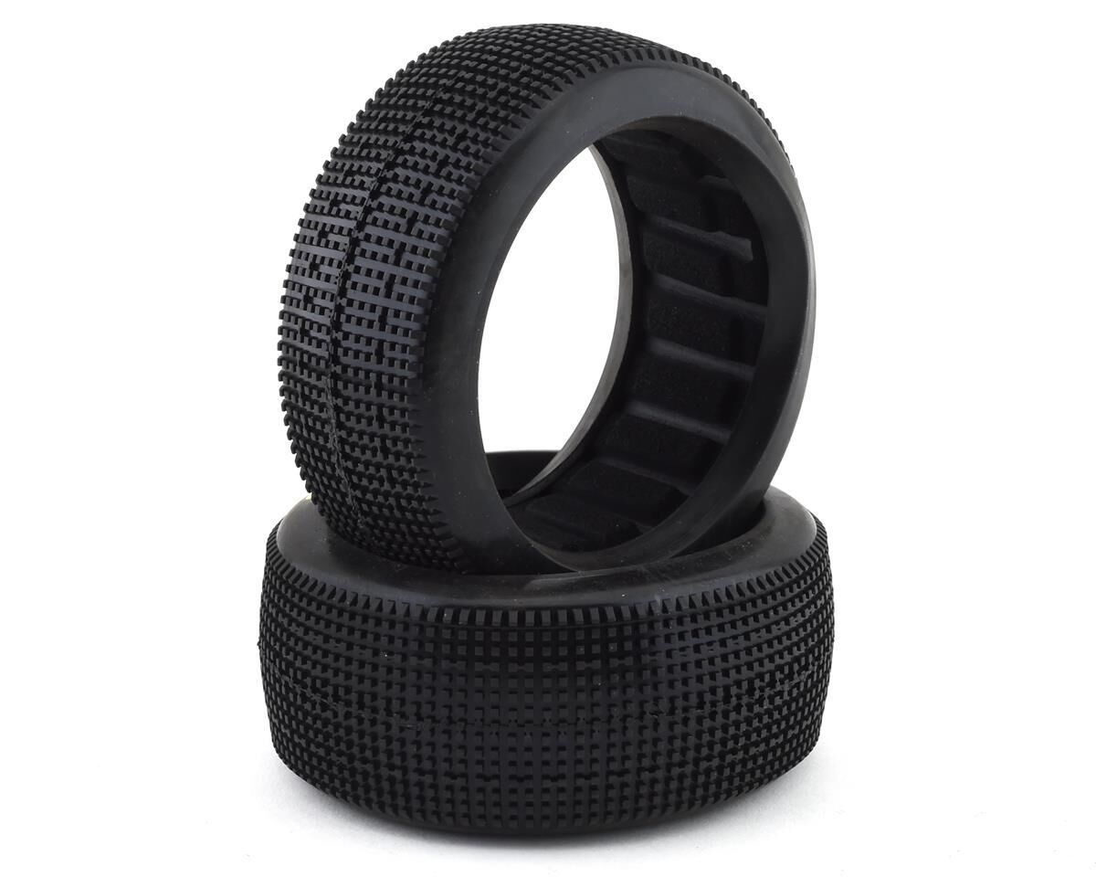 Aurora is our newest generation of outdoor 1/8 scale tire that excels in a wide variety of conditions. Smaller pins with vertical walls make give the tire a very responsive direct feel. The unique pin spacing allows the tire to excel on high grip surfaces while still maintaining the ability to cut the dust as the race goes on. Available in 5 different rubber compounds the Aurora fits the industry standard 1/8th scale buggy wheel. Tires come with closed cell inserts.