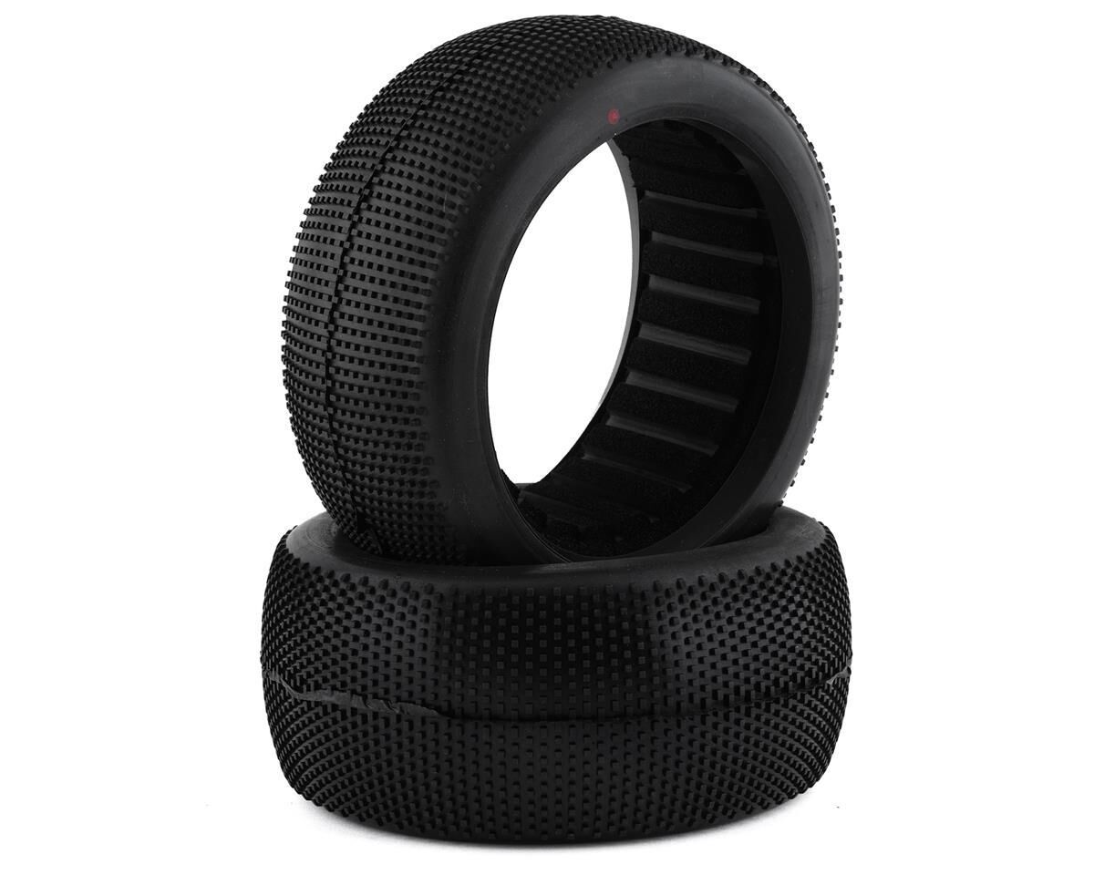Ready to rip into the surface providing excellent traction and stability. Super Mini has a pin profile and tread density which provides for superior traction, lasts much longer, and works across a wide variety of surfaces and surface conditions. Good for both wet and dry track this Super Mini 180209 tire will mount to any industry standard 8th scale Truggy wheel. Available in 5 different rubber compounds. Tires come with closed cell inserts.