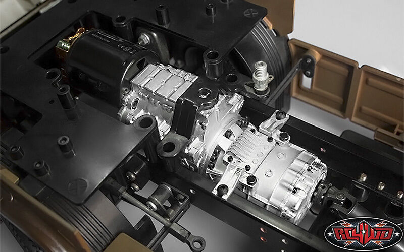 When using the EcoDrive 1/14 CVT Automatic Transmission for Tamiya 1/14 Semi Trucks (VVV-S0160), you may first notice its weight. Made of zinc alloy, this EcoDrive 1/14 CVT Automatic Transmission for Tamiya 1/14 Semi Trucks (VVV-S0160) comes in at 26.17oz and is twice as heavy as most stock transmissions to provide extra durability. When setting up, you can choose to use either the stock motor or a 35T. SemiJoe paired our it with our RC4WD 540 Crawler Brushed Motor 35T (Z-E0005) and starts by removing the body mount and center crossmember. Next, you'll want to remove the transmission and driveshaft.