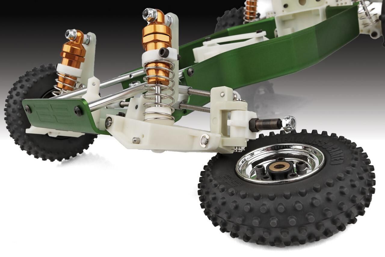 RACE-WINNING DESIGN AND PERFORMANCE The RC10 started as the vision of Team Associateds founder Roger Curtis (RC) and became one of the most iconic RC cars in history. In celebration of the 60th anniversary of the company that brought you the RC10, we are proud to bring to you the RC10 Green 40th Anniversary Edition kit, an alternate reproduction of Rogers world championship-winning design that changed the world of RC off road racing forever. CELEBRATE WITH US! In 1964, slot cars were the hottest trend, so hobbyists Roger Curtis and Lee Yurada decided to get in on the fun. The two started off by producing slot car parts, accessories, and even cars. They soon opened a local slot car racetrack in Lynnwood, CA and Associated Electrics (AE) was born! The peak of the slot car hobby was short-lived, so in 1969 Roger Curtis decided to step into a new and booming hobby: radio-control cars! Lee Yurada sold his interest in Associated Electrics to Gene Husting, and together Roger and Gene formed the Team Associated RC brand of products. Throughout the 1970s, Team Associated focused on 1:8 scale gas on-road racing. In 1977 Team Associated took first place at the very first IFMAR World Championships, with Butch Kroells driving his RC100. This victory would start a long list of IFMAR wins for this new company. The following year Team Associated released its first electric powered vehicle, the RC12E. A few years later, in 1982, team driver Kent Clausen would bring home another IFMAR World Title with the newly released RC12i. THE TEAM DOES IT IN THE DIRTA RACE CAR, NOT A TOY.Sure, youve heard that before. But Team Associated designs and engineers model RACE cars. The new RC10 Classic features fully adjustable four-wheel independent suspension, an aluminum alloy monocoque tub and race-proven hardware throughout. Strength and durability are standard equipment. RACE-WINNING ENGINEERINGFor maximum traction, the RC10 suspension is damped by long throw, fluid-filled racing shocks, using machined alloy cylinders and drill blank shafts for silky smooth action. Rugged, yet light, the suspension gives you all the adjustability of full-size race buggies. The A-arm/Ball joint design allows precise camber, caster, ride height, and spring rate tuning. Even the adjustable VariLok differential is included, and the updated chassis fits 6-cell NiMh and 2S LiPo battery packs. Exceptional ground clearance and low center of gravity also contribute to the superb balance and performance of the RC10 over all types of terrain. GET THE JUMP ON THE COMPETITION.Go RC off-road racing with the leaders. The World Champion RC10 is available now and ready for competition.Complete RC10 kits are readily available through model car racings most extensive dealer network. Take the challenge and build yourself a winner. Team Associateds RC10. Original box art text from 1984 RACE-WINNING DESIGN AND PERFORMANCE The design and construction of the RC10 is totally unique to electric off-road cars, featuring a rigid alloy monocoque tub with fully adjustable suspension. Included are Associateds custom coil-over aluminum racing shocks, VariLok differential and modular 3-piece clamping wheels. Engineered for easy assembly and maintenance, the RC10 is also easy to drive over all kinds of terrain. The rugged nylon suspension and alloy tub are tough enough to handle bumps and crashes of beginners as well as intense wheel-to-wheel action. So, buckle up and go off-road racing with the team. The Associated Electrics RC10 Green 60th Anniversary Edition is ready to take on the competition. The smooth undercarriage of the RC10s aluminum monocoque tub and special gearbox provide maximum ground clearance. Full race rear suspension includes durable dog bone and stub axle drivetrain with pinned modular wheels. Quick release knockoff design provides fast, accurate alignment. Low profile gearbox uses VariLok adjustable diff and is protected by an integrated motor/heat sink. Independent suspension with coil-over shocks help smooth out the bumps. Precision molded nylon suspension components can be easily custom color dyed. A-Arm/Ball joint design permits static camber, camber rise, caster, ride height and spring rate tuning to suit every type of track. Features The RC10 Classic is designed to accept 6-cell NiMH and 2S LiPo battery packs T6 aircraft aluminum monocoque tub Competition modular wheels Front skid plate Adjustable custom aluminum racing shocks Fully adjustable 4-wheel independent suspension Required to Complete 6-cell NiMH or 2S LiPo for radio-controlled car Radio control battery charger 1:10 scale radio control electronic speed control 1:10 scale 540-size electric RC car motor 2-channel RC surface transmitter and its batteries Steering servo 2-channel receiver Pinion gear Paint for the body Recommended: Glue for tires and wheels (ASS6010)