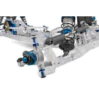 - 13mm big-bore threaded aluminum shocks and springs with machined shock pistons for improved bump and jump handling