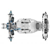 - natural silver +3mm length aluminum chassis with 22. 5 degree kick-up to complement updated front-end geometry and with a new shape to reduce chassis scrub with the track surface