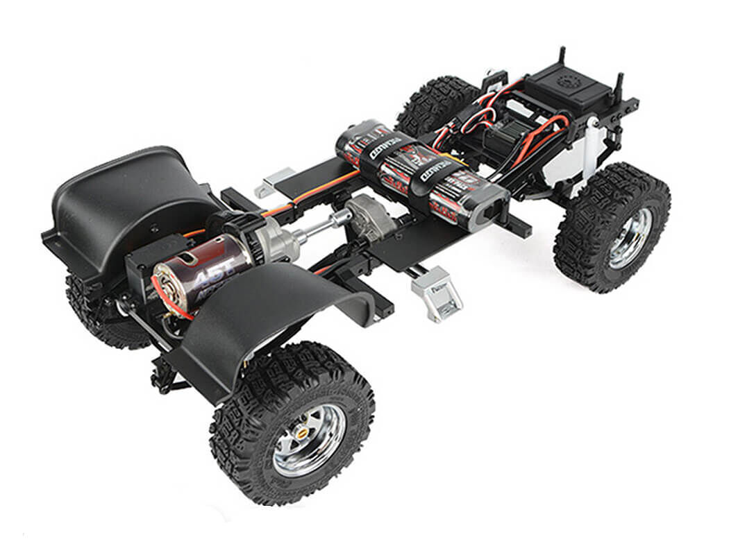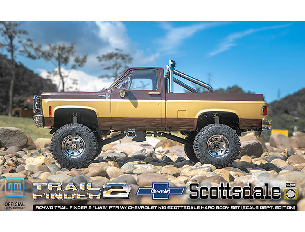Rc4wd trailfinder 2 rtr lwb with chevrolet k10 scottsdale body features drivetrain the r3 single speed transmission comes with a tough cast metal case, wider gears for durability and a delrin spur with slipper clutch for performance. It also features a sturdy billet aluminium motor mount for added toughness. The trail finder 2 includes the hammer transfer case that features a cast metal exterior and heavy-duty. 8 mod widened gears, ensuring lasting functionality. Drawing on the success of the rc4wd moa gear sets, the trail finder 2 has the most durable gears rc4wd has to offer, capable of staying on the trail day after day. The most scale-accurate axles on the market, the k44 ultimate scale cast axles feature high steer knuckles, xvds, lower mounting points, and a compact offset front pumpkin. The driveshafts on the trail finder 2 feature heavy-duty uni-joint metal shafts for great driveline angles and durability on the trail. Suspension the trail finder 2 has a multi-purpose, molded fuel cell that serves as an electronics storage box and provides additional rc realism by storing away any protruding wires. The trail finder 2 includes scale 70mm and 80mm white shocks with internal springs. These ultimate scale shock absorbers offer realistic looks and ultimate performance. They are machined from billet aluminium with internal springs and are customizable. With strength in mind, the ladder frame design of the trail finder 2 is made with cnc machined, billet aluminium and comes with scale shock hoops, a chassis servo mount, and transmission and transfer case mounts. The scale dept. Edition includes a set of rugged 8 lug deep dish wagon wheels. These 1. 9"" chrome-plated wheels are formed with stamped steel and are finished off with scale wheel hubs. Every rtr needs a tough set of tyres to hit the trails and the included rc4wd dick cepek fun country 1. 9"" scale tyres deliver the perfect amount of traction with its advanced x2s3 compound. The scale details complete the look in just the right size. Details the chevrolet k10 scottsdale features exquisite scale details, including door handles, updated mirrors, new rear step bumper and the new front grille. It also has a complete molded plastic engine bay that comes painted with decals installed for an extremely scale appearance. The chevrolet k10 scottsdale hard body is constructed of durable hard plastic with a classic shape that replicates the full-size model with accuracy and authenticity. The chevrolet k10 scottsdale hard body features a molded, realistic drop bed and an opening hood and tailgate. The masters of scale are unmatched when it comes to details. The chevrolet k10 scottsdale hard body set includes an improved dashboard with preinstalled, super-scale interior decals and door panels. Straight out of the box, an led light set comes professionally installed and concealed, keeping that realistic look. Included are chrome-plated parts and coloured lenses for that scale look! now including the old school halogen headlights. Electronics the trail finder 2 includes a high-quality xr3 3 channel 2. 4ghz radio system. Expanding user experience, this radio system comes with a total of three radio channels! the trail finder 2 is powered by the rc4wd 45 turn crawler motor. With its sealed end bell for increased durability and long lasting performance, you're sure to get where you're going! included is the popular rc4wd outcry iii waterproof esc brushed speed controller, with built-in drag brake, for reliable constant power on demand at any time! with a massive 277. 6oz@6v of torque and a full metal geared drivetrain, the rc4wd twister metal gear digital servo has the power and performance needed to outmaneuver and overcome tough terrain. It's all in the box! everything you need is provided to get you on the trails today! more features chevrolet k10 scottsdale hard body. Small block v8 engine bay w/ dress up kit. Halogen style lights (retro look). Chrome front grille for chevrolet blazer and k10 (80's). Chrome single tube roll bar and front push bar. Chrome rear step bumper. 8 lug chrome deep dish wagon 1. 9"" steel stamped beadlock wheels. Dick cepek fun country 1. 9"" scale tyres. K44 ultimate scale cast axles (xvd). X-ring scale shock absorbers 70/80mm. Front inner fenders. Twister high torque metal gear digital servo. 45t 540 brushed crawler motor. R3 single speed transmission. Center mounted hammer transfer case. Chrome side steps. Outcry iii waterproof esc. 6-cell 3000mah nimh battery pack. Specifications hammer transfer case ratio: 1. 47:1 gears: wide. 8 mod hardened steel gears features: 8 bearings, cast casing, hardened gears r3 scale single speed transmission ratios: pinion/spur 14/64 = 4. 57:1 internal ratio: 1. 78:1 gears: wide steel. 8 mod, delrin spur, slipper clutch k44 ultimate scale cast axles ratio: 2. 67:1 hex to hex width: 177mm (6. 96"") shock absorbers x-ring scale shock absorbers 70/80mm wheels type: rc4wd 8 lug deep dish wagon 1. 9"" steel stamped beadlock wheels (chrome) fits standard: 12mm hex width: 1. 26in / 32. 0mm od: 2. 08in / 53. 0mm tyres type: rc4wd dick cepek fun country 1. 9"" scale tyres outer diameter: 3. 94in / 100mm width: 1. 52in / 38. 8mm inner diameter: 1. 81in /46. 0mm tf2 truck dimensions wheelbase: 312. 0mm(12. 3"") width: 220. 0mm(8. 7"") height: 251. 0mm(9. 9"") ground clearance: 62. 0mm(2. 4"") final drive ratio: 31. 9:1 what's included 1 x rc4wd trail finder 2 ""lwb"" rtr w/ chevrolet k10 scottsdale hard body set (scale dept. Edition) notes please note that these truck bodies are hand-painted, so minor blemishes, differences, or imperfections may occur. While some components may come assembled, we always recommend that you check the products to ensure all hardware is tight. In some cases, you may want to apply thread lock to some of the hardware that is already installed. Use good quality hex drivers to avoid stripping screw heads. Use thread lock when putting metal screws into metal parts. Use t
