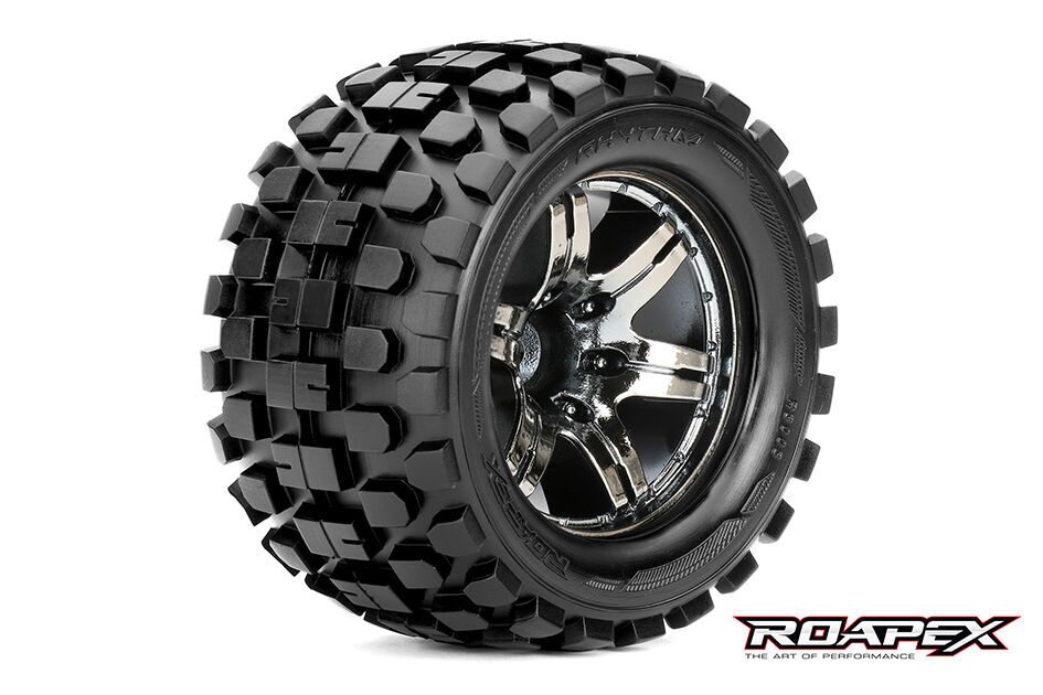 Enquire about " Roapex Rhythm 1/10 Monster Truck Tirechrome Black Wheel With 1/2 Offset 12Mm Hex Mounted - R3003-Cb2"
