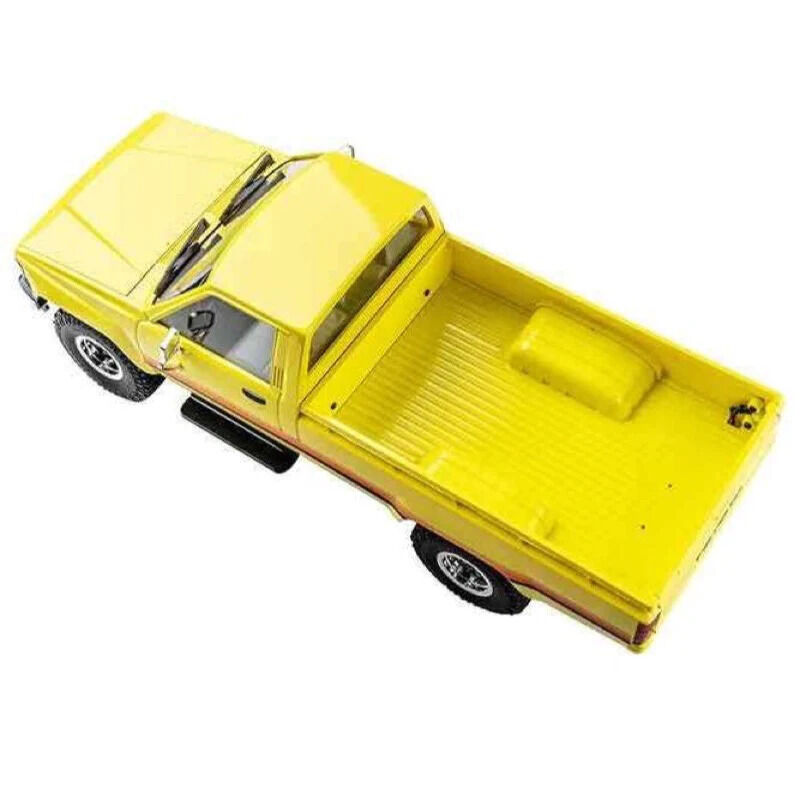 The exquisite design is perfectly expressed from classic yellow body paint with sports stripes to the fantastic electric silver rear view mirror, from realistic interiors, centre console, and steering wheel to openable tailgate and ridged cargo bed. The spacious bed lets you experiment with different cargo for a classic scale Hilux appearance.