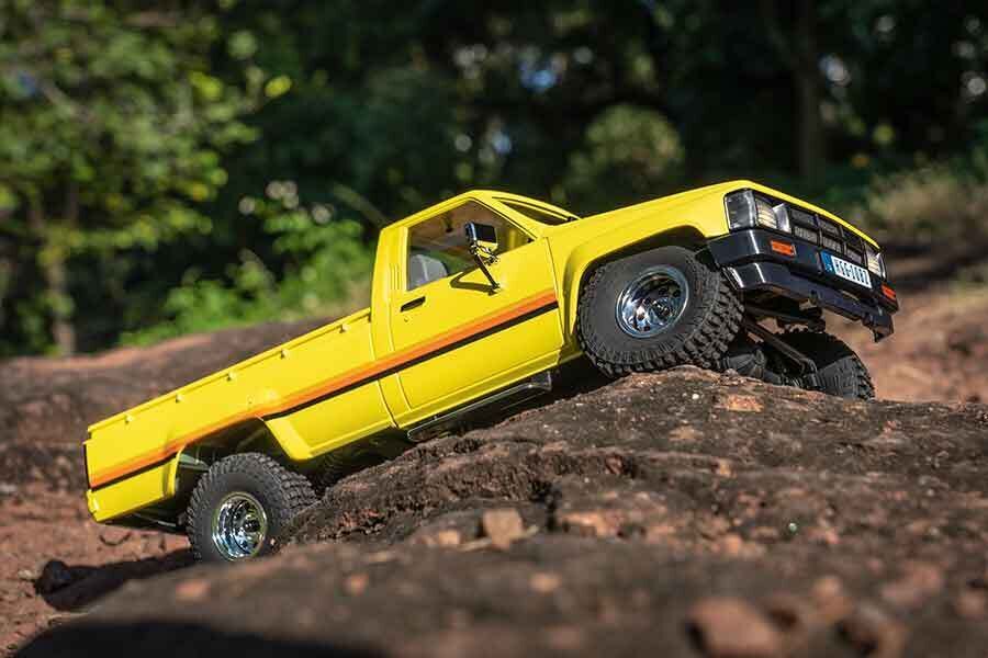 This officially licensed FMS Hilux is a late third-generation Hilux, but the grille and headlights have been back-dated to the arguably more attractive round units found on earlier rigs. With a tailgate that lowers the loading height, a spacious cab and a sunken frame, FMS Hilux adheres to the revolutionary "square body" and features a perfectly replicated real car in terms of 4WD, metal beams, aluminium frame rails and reliable multi-link suspension system.